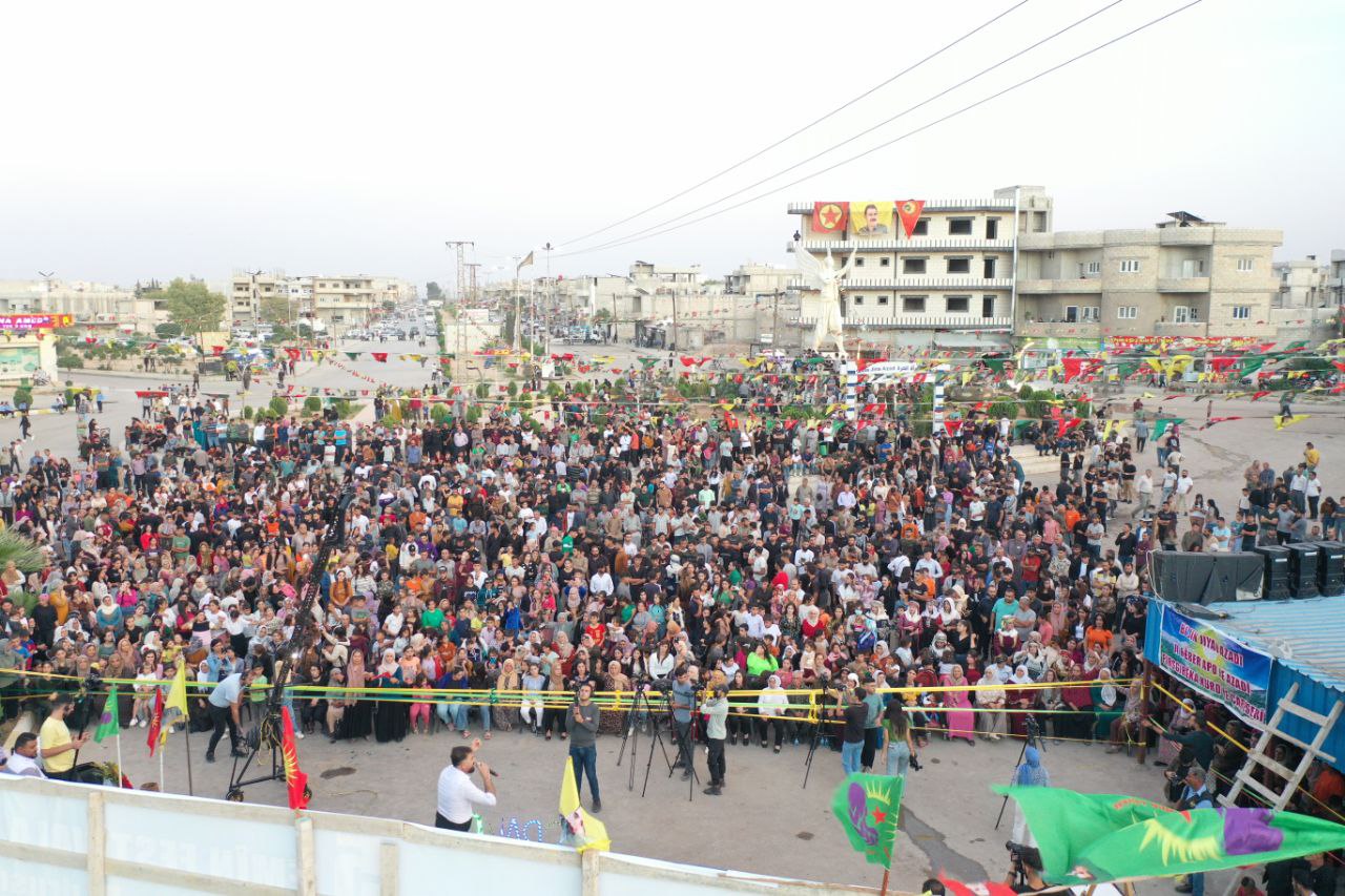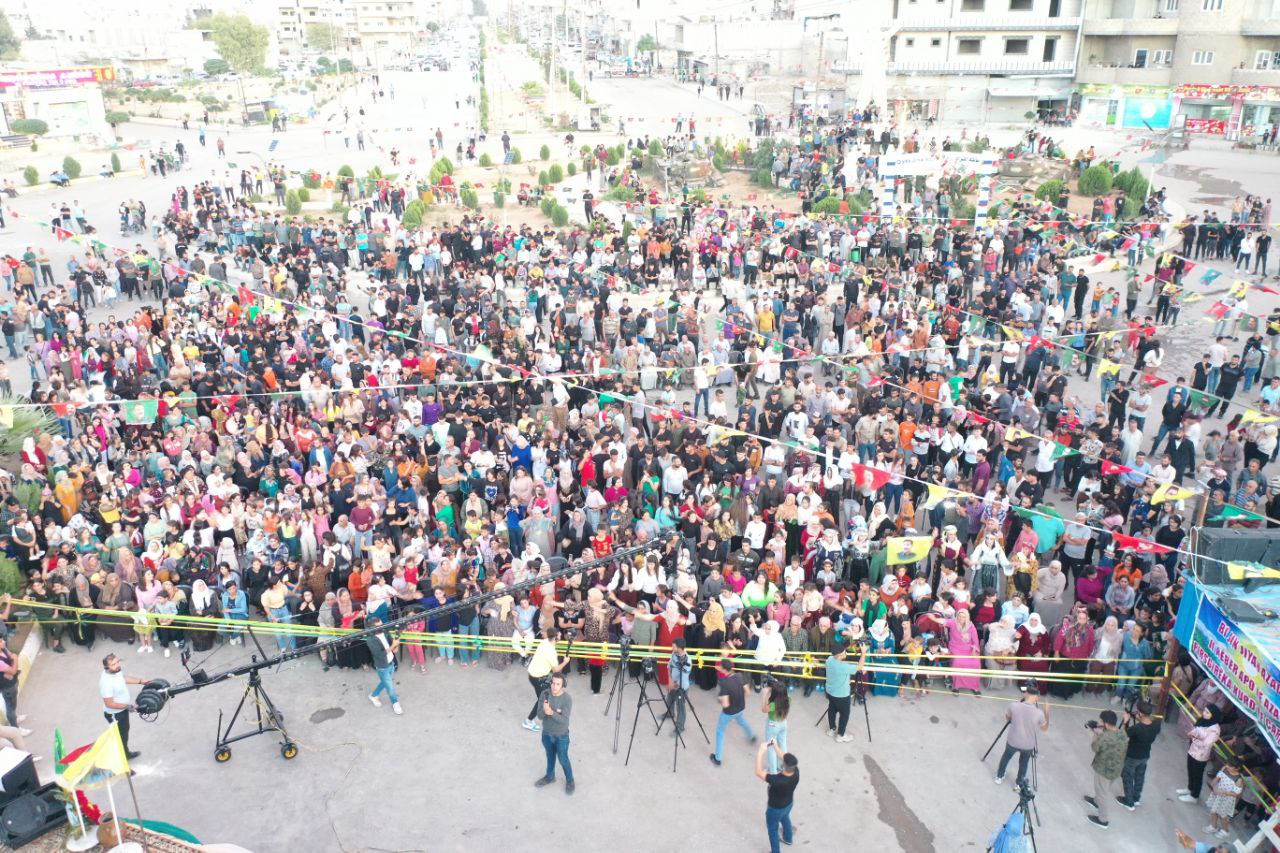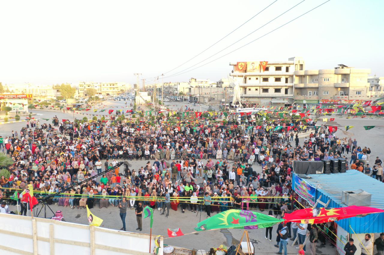Burada konuşan Kuzey ve Doğu Suriye Devrimci Gençlik Hareketi yöneticisi Mawa Tolhildan, “Önderimizi halktan ve gençlikten koparmak istiyorlar ama hem Önderliğimiz hem de halkımız buna inanılmaz bir ısrarla direniyor. 43 aydır Önder APO’yu susturmaya çalışıyorlar ama biz gençler olarak Önder APO’nun fiziki özgürlüğünü sağlayacağız” dedi.