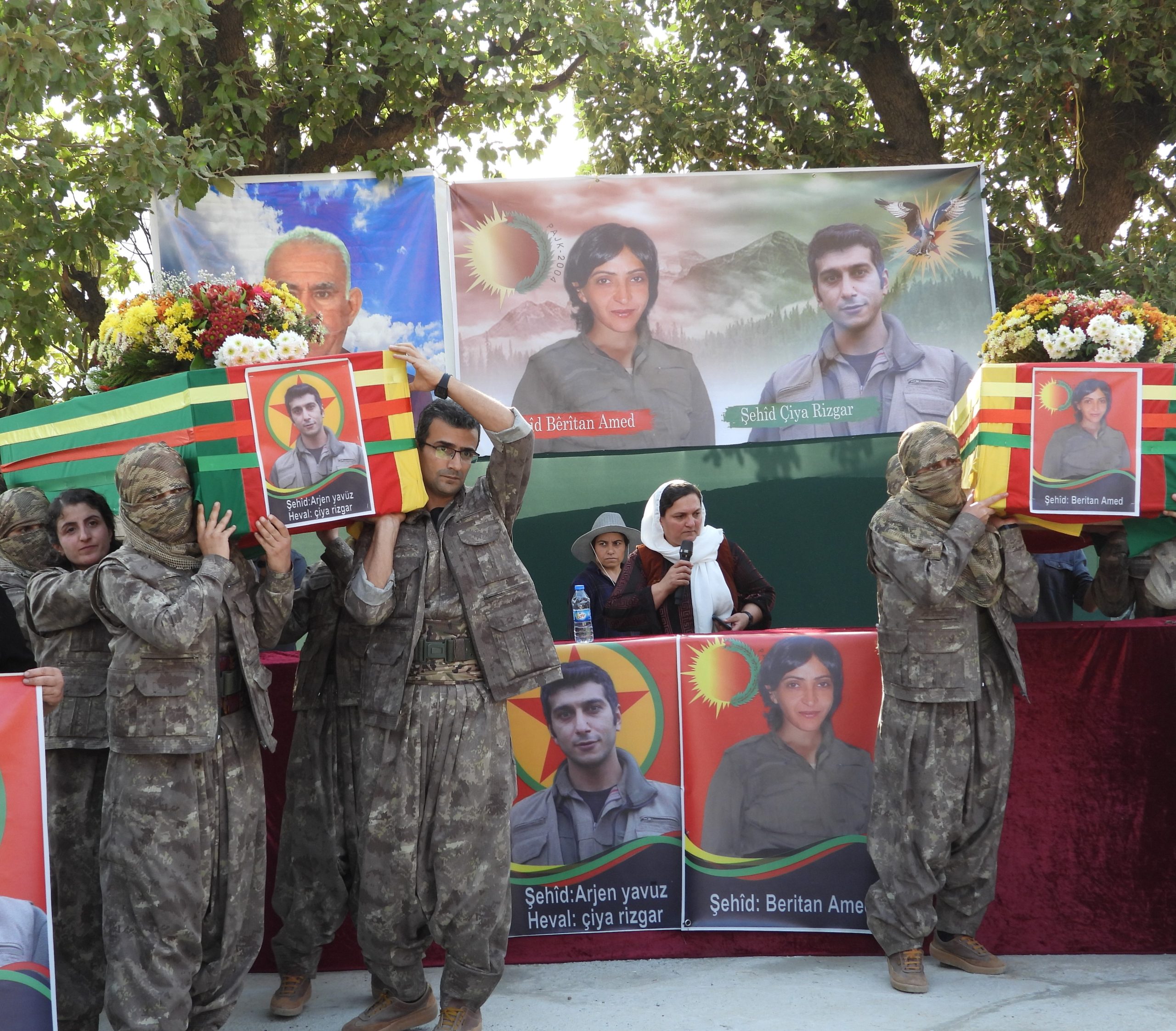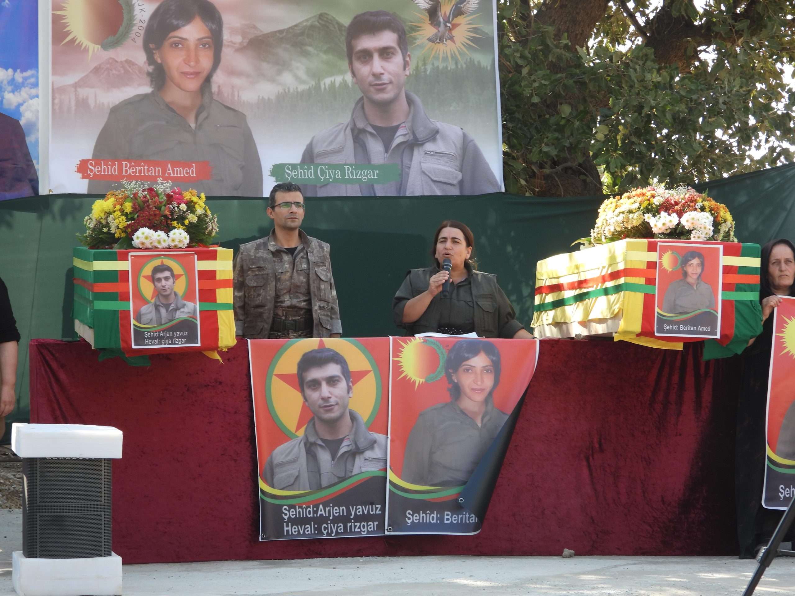 Konuşmaların ardından şehitlerin kimlik bilgileri okundu. Bêrîtan Amed ve Çiya Rizgar, “Şehîd Namirin” ve “Bijî Serok Apo” sloganları eşliğinde Kandil Şehitliği’nde yoldaşlarının yanına defnedildi.