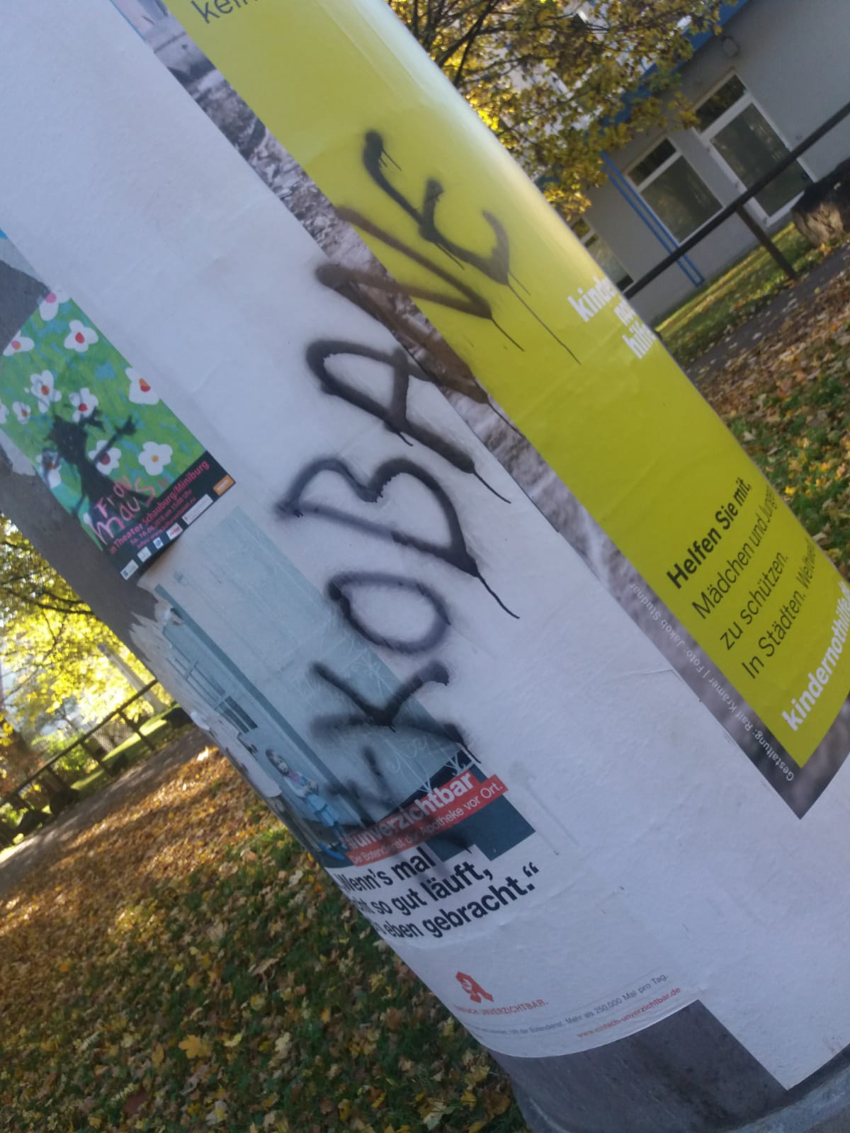 Münih Kaufbeuren’de 1 Kasım Dünya Kobanê Günü ve işgalci Türk devletinin saldırılarını kınama için iş yerleri, polis karakolu önü ve bir çok yere Apo, PKK, YPJ, Seri Hilde ve Kobane yazıları yazıldı.