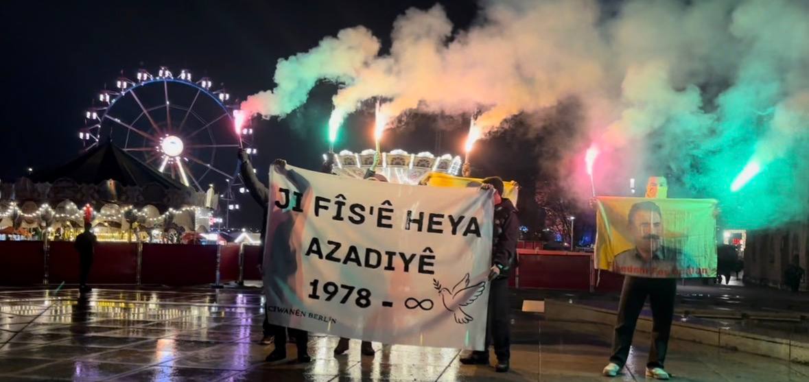 Gecenin sonun da Berlin Ş.Kawa Çekdar komünü Alexanderplatz meydanında havai fişeklerle açıklama da bulunup Ulusal Diriliş bayramı Başta Önder APO olmak üzere tüm yurtsever kürt halkının bir kez daha kutladı.