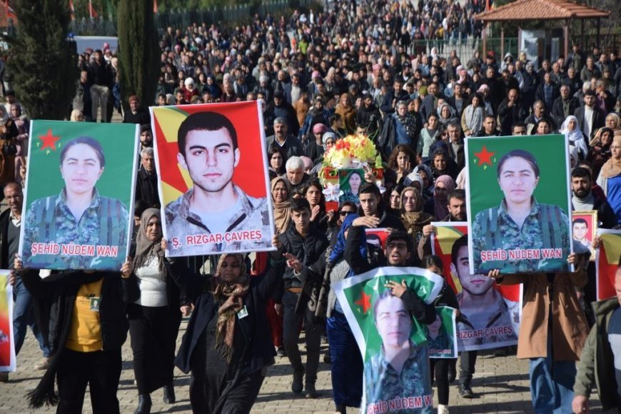 Fırat Kantonu’ndan yüzlerce yurttaş YPJ savaşçısı şehit Nûdem Wan’ı Kobanê kentinde düzenlediği kitlesel törenle son yolculuğuna uğurladı. Törende devrimci operasyon şehidi özgürlük gerillası şehit Rizgar Çavreş de anıldı.