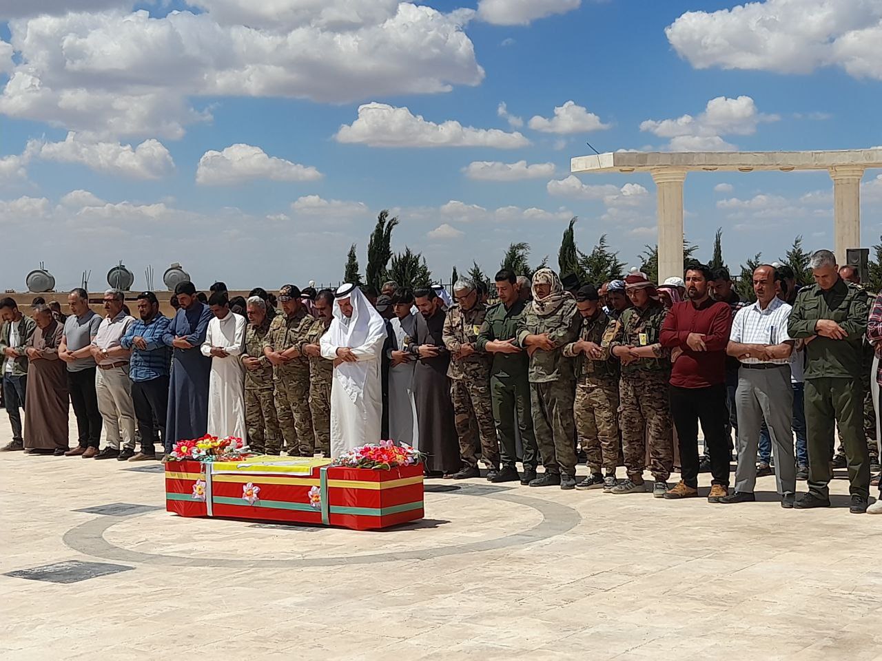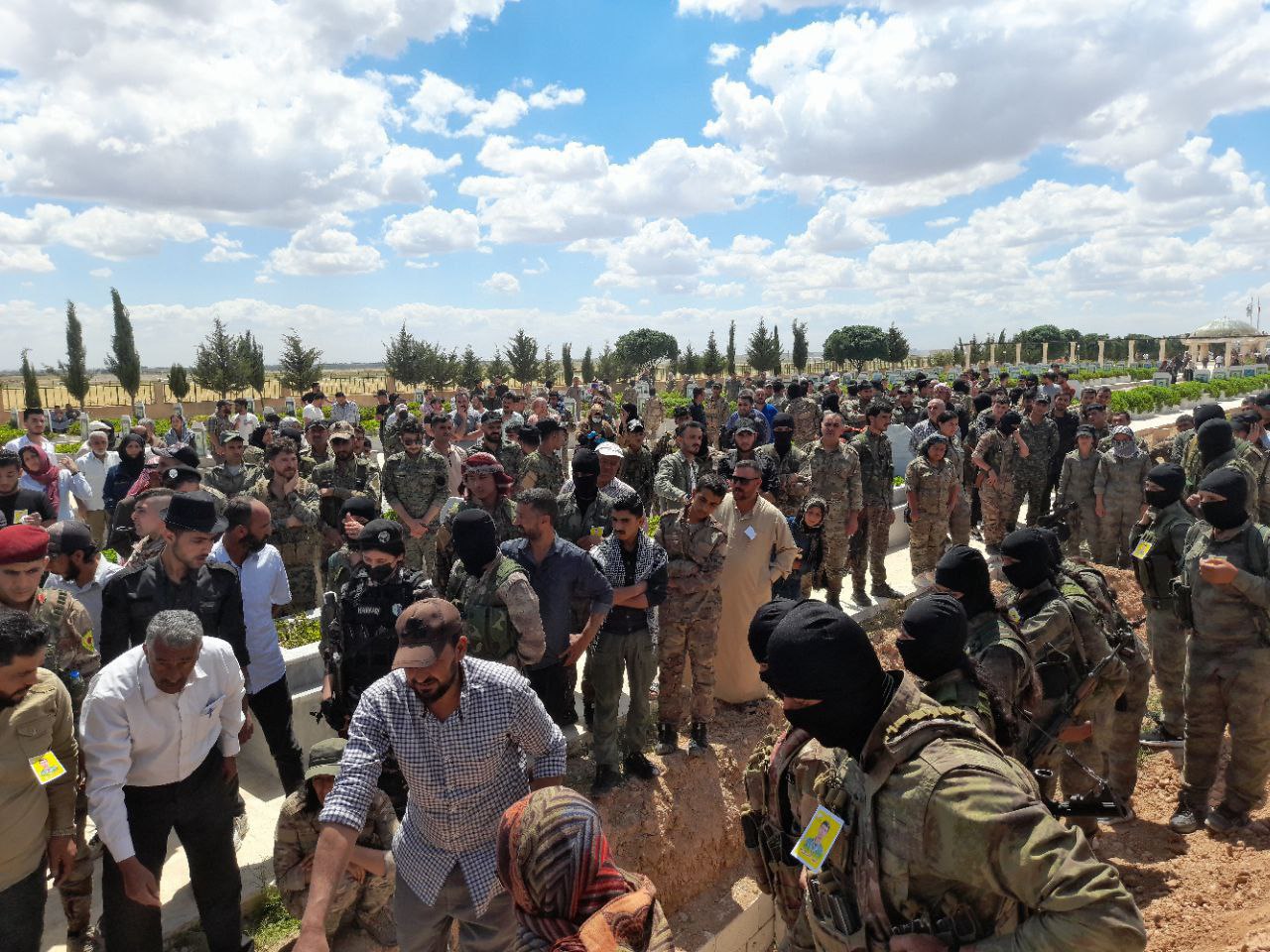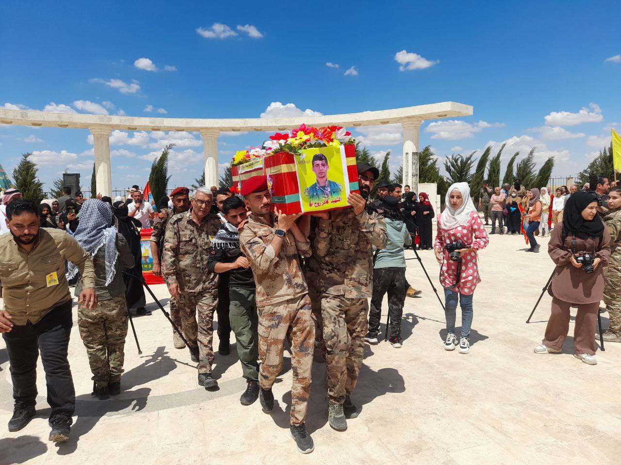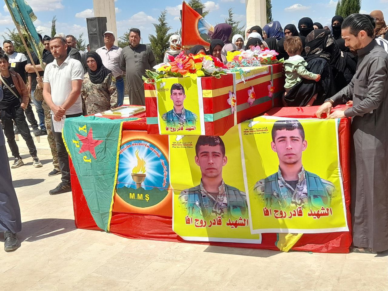 REQA-Reqa kantonunda yüzlerce sivil ve askeri örgüt üyesi, Suriye’nin Geleceği Partisi, Zenubiya Kadın Topluluğu ve Şehit Aileleri Meclisi üyeleri kantonun kuzeyindeki Hikumiye beldesinde bulunan Şehitlikte toplandı. Demokratik Suriye Güçleri (QSD) şehidi Qadir Rojava (Raqî Mulhim El Mûsa) için uğurlama töreni düzenlendi. Şehit Qadir Rojava, Reqa kantonunda meydana gelen kazada şehit oldu.