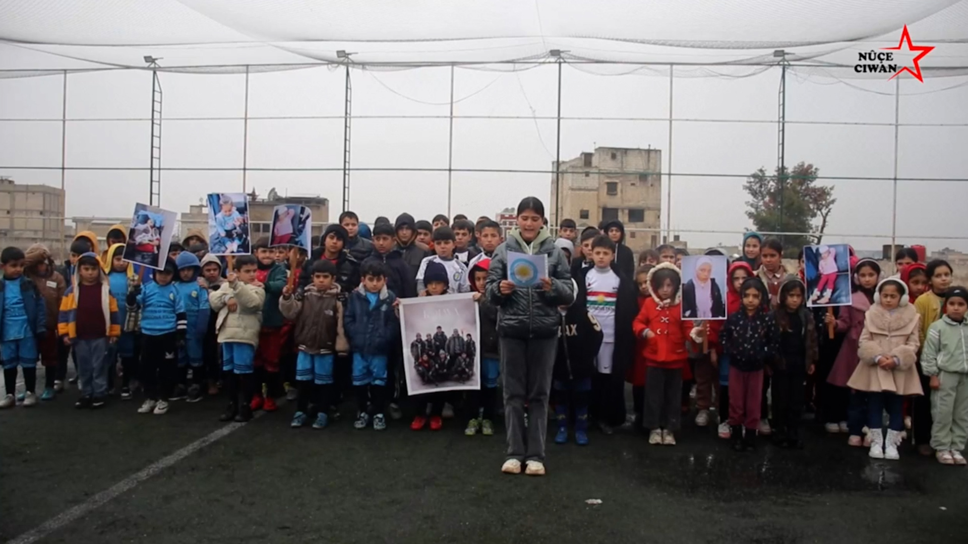 KOBANÊ – Fırat Kantonu Gençlik ve Spor Bakanlığı’na bağlı Şehit Roniza ve Şehit Azad Futbol Akademisi’nden çocuk sporcular, Türk devletinin ve Şam hükümetine bağlı çetelerin Şexmeqsud ve Eşrefiye mahallelerine yönelik saldırılarını ve özellikle çocuklara karşı işledikleri savaş suçlarını kınayan bir bildiri yayınladı.