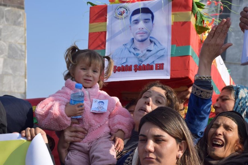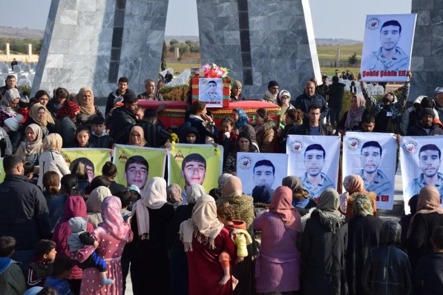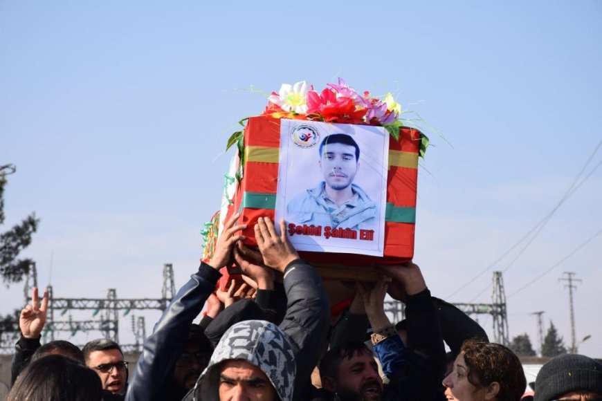 KOBANÊ- Fırat Kantonu’ndan yüzlerce yurttaş, işgalci Türk devletine ait SİHA’ların 28 Aralık 2023’te Şengal’in Korê Simoqyê köyündeki yurttaşlar için su kuyusu açmaya çalışan Rojavayê Kurdistanlı işçilerin kaldığı çadırı bombalaması sonucu 4 arkadaşıyla birlikte şehit düşen Şahîn Elî’nin cenaze törenine katıldı. Şehit Şahîn Elî görkemli bir törenle Şehit Dicle Şehitliği’nde toprağa verildi.