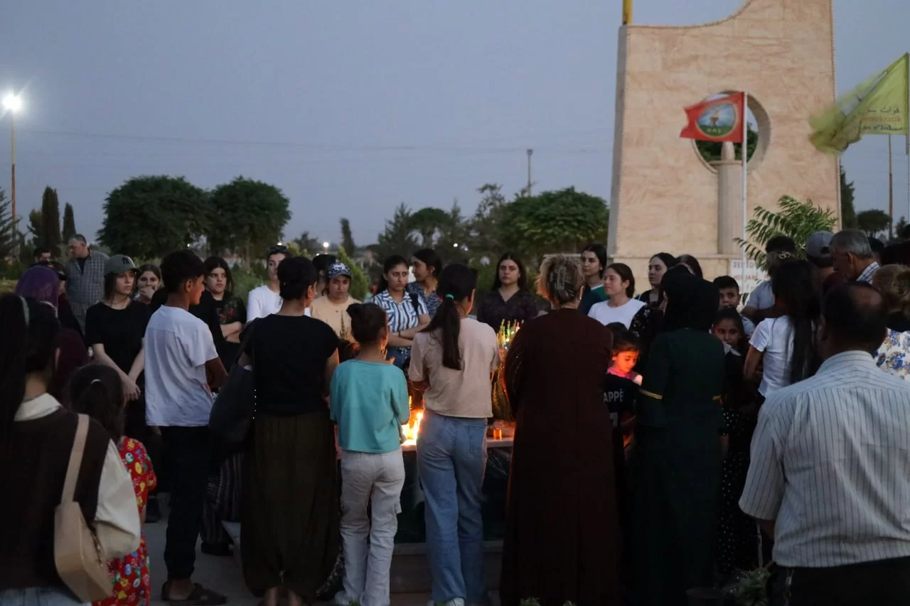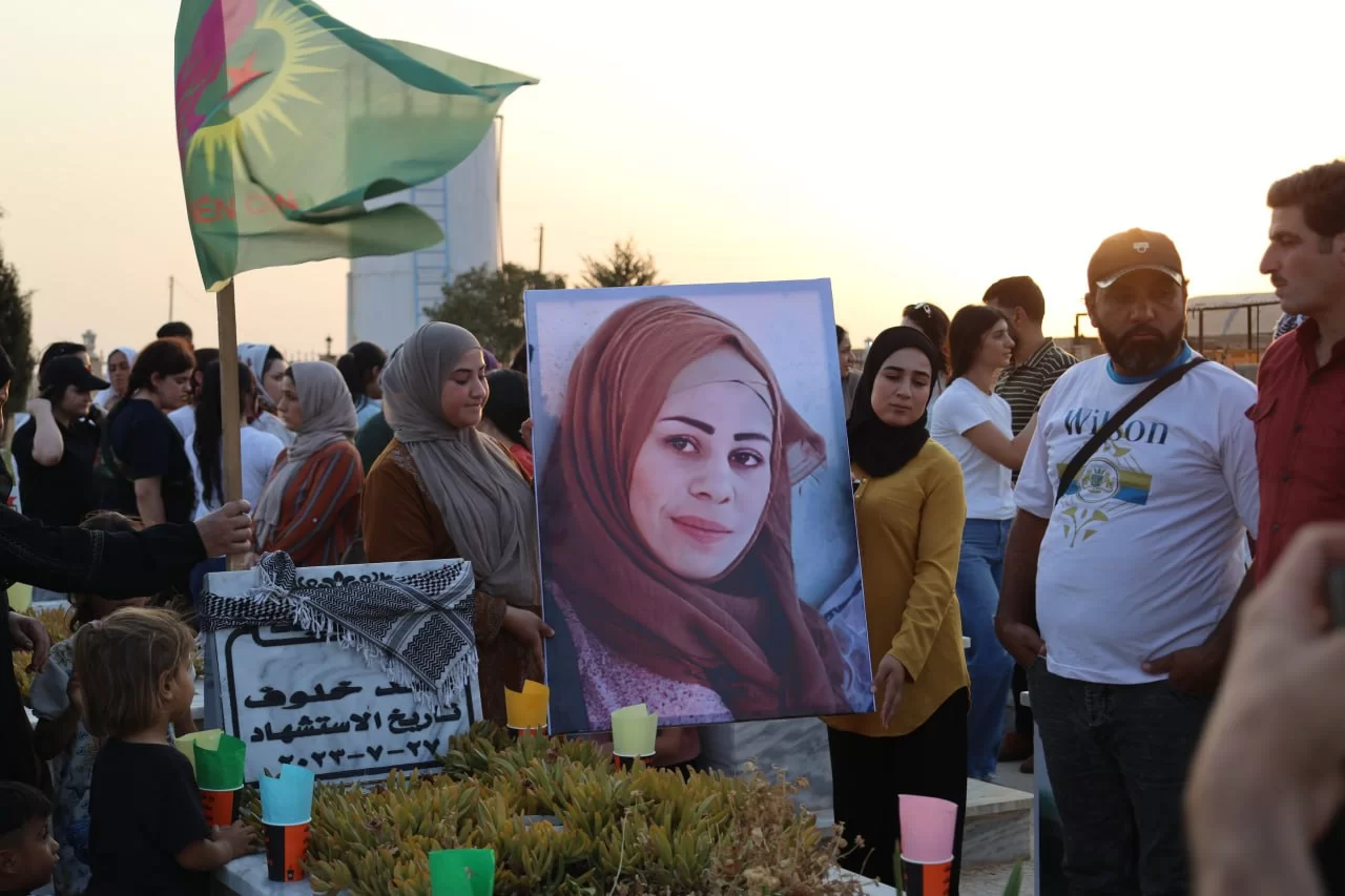 Katılımcılar, şehitlerin fotoğraflarını taşırken, mezarları ziyaret edip mumlar yaktı. Genç Kadınlar Birliği, Şehit Waid Xeluf’un fotoğrafını ailesine hediye ederek anma etkinliğine anlam kattı.