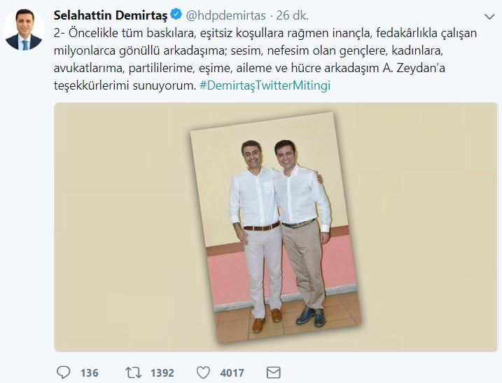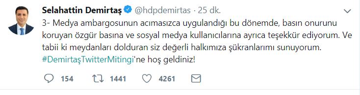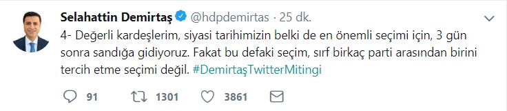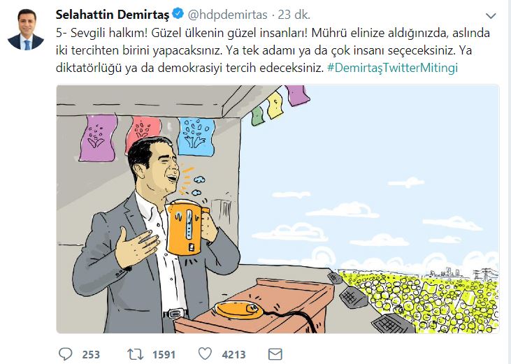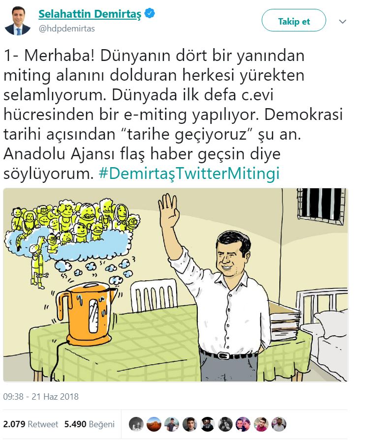 HDP’nin Cumhurbaşkanı aday Selahattin Demirtaş, Twitter’dan e-miting düzenliyor.