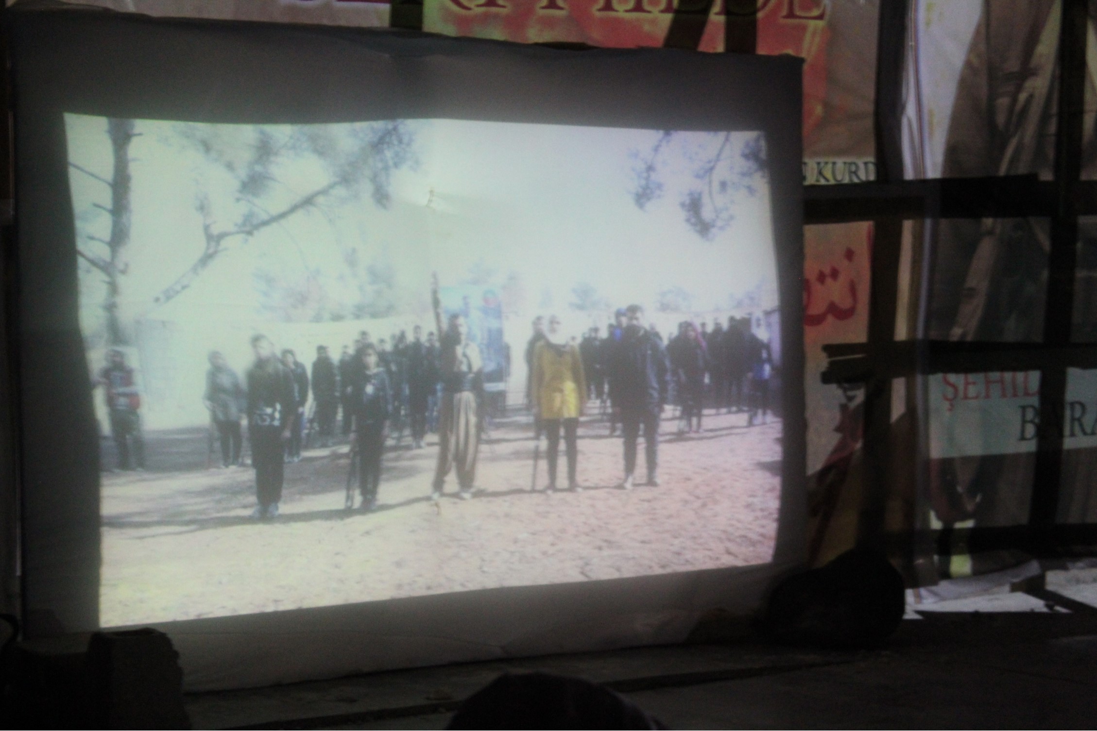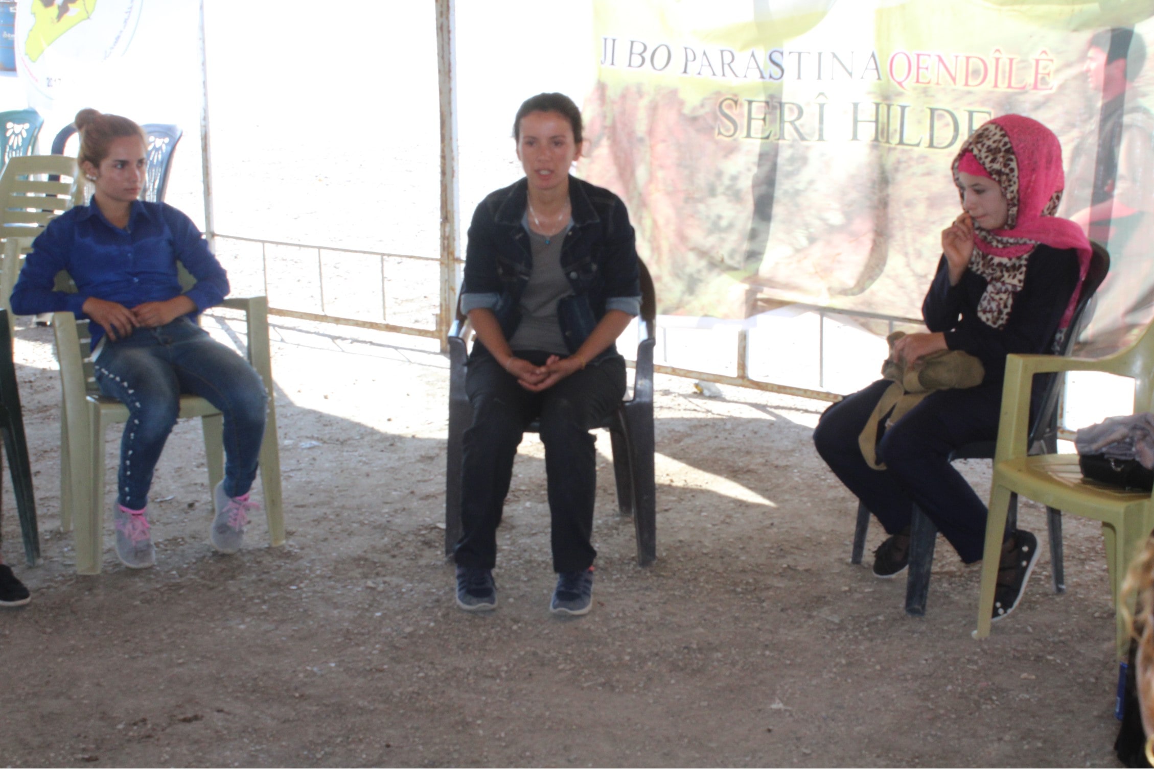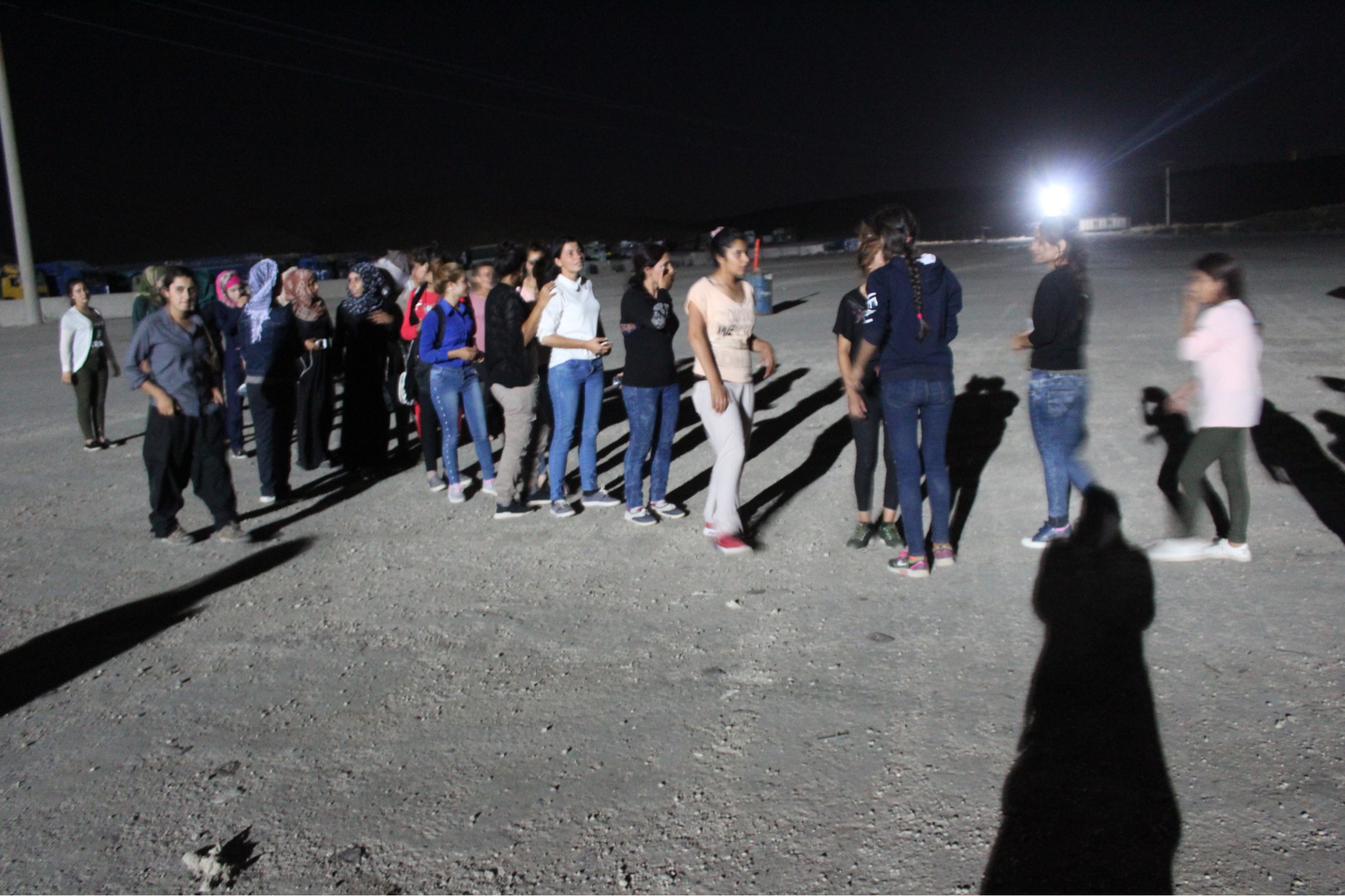 Dün gece eylem alanına ulaşan Kobanê’li genç kadınlar, daha önce alanda bulunan Qamişlo’lu genç kadınlar tarafından karşılandı.