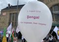 Eylem çağrısı SMJÊ ve Bielefeld Kürdistan Merkezi tarafından yapıldı. Saat 15 civarında Bielefeld merkez istasyonunda 200 kişi toplandı. Şengal’da katliam sonucu hayatını kaybeden ve Şengal topraklarını savunurken şehit düşen savaşçılar anısına saygı duruşu gerçekleşdikten sonra, katılanlar, “3. Ağustos 2014 – Şengal, Unutmak Yok, Affetmek Yok” yazılı 74 tane beyaz balon uçurdu.