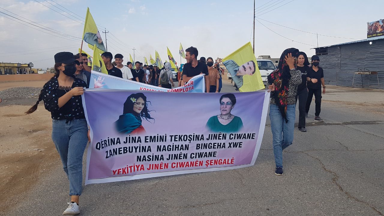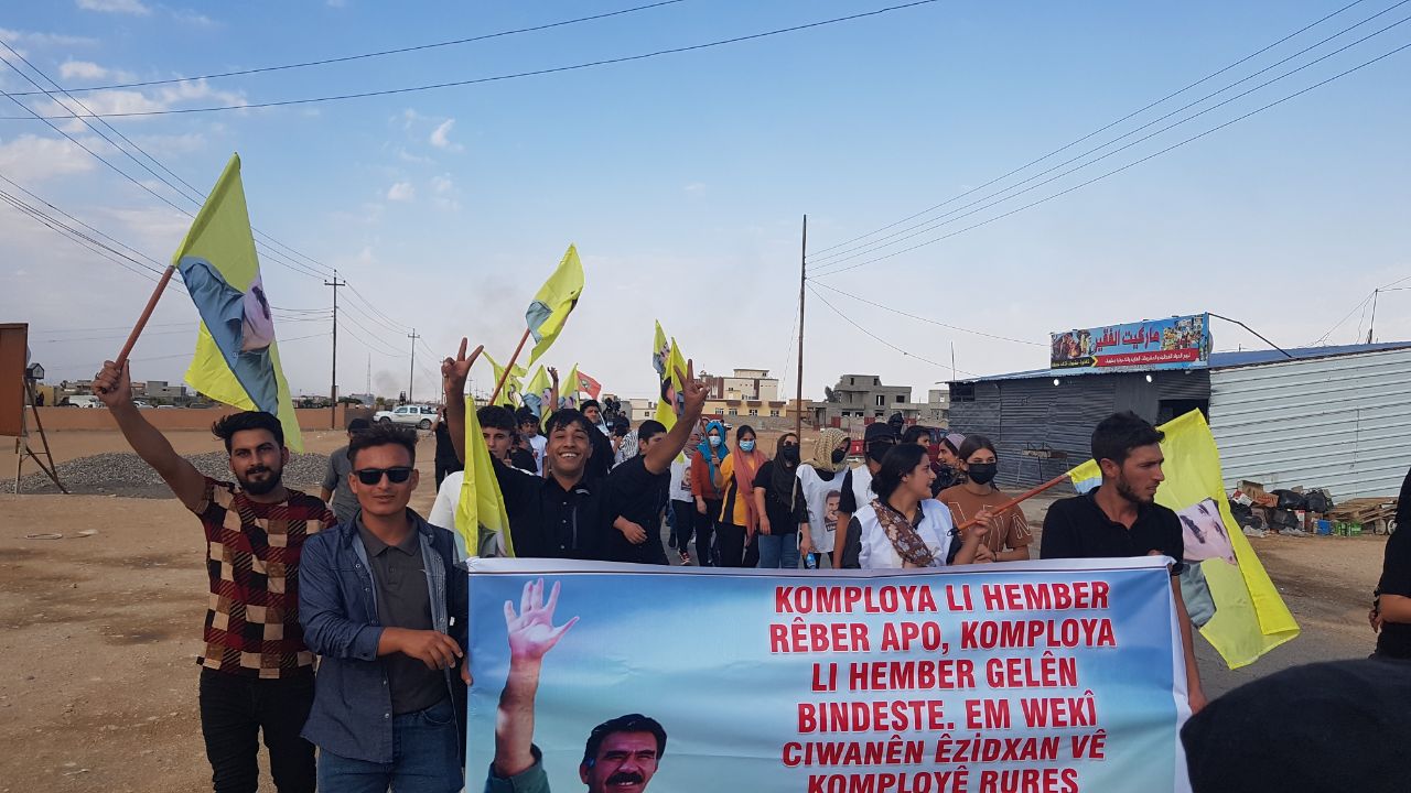 Yekîtiya Jinên Ciwan ên Şengalê ve Yekîtîya Ciwanên Ezîdxan öncülüğünde gerçekleştirilen yürüyüşte genç kadınlar ve gençler “Bijî Serok Apo” ve “Bimre îxanet” sloganlarını haykırdı. Gençlik bütün coşkusu ve intikam ruhuyla Önder Apo’nun özgürlüğünü haykırdı.