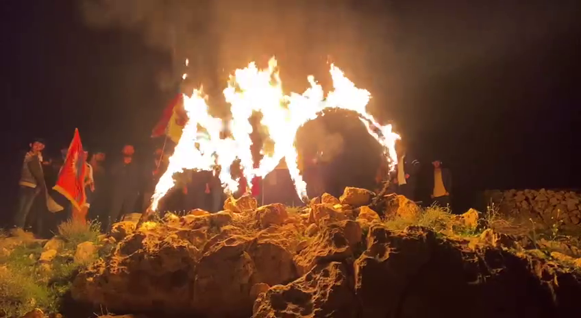ŞENGAL – 4 Nisan sebebiyle Şengalli genç kadınlar ve gençler Şengal Dağı’nda bir araya gelerek Önder Apo’nun doğum gününü kutladı. Ateş ile APO yazan gençler sıksık “Bijî Serok Apo” sloganları attı.