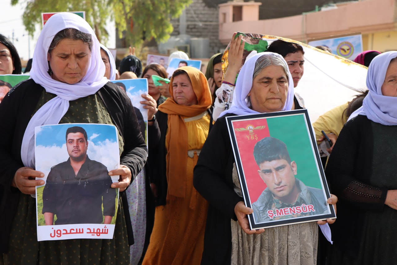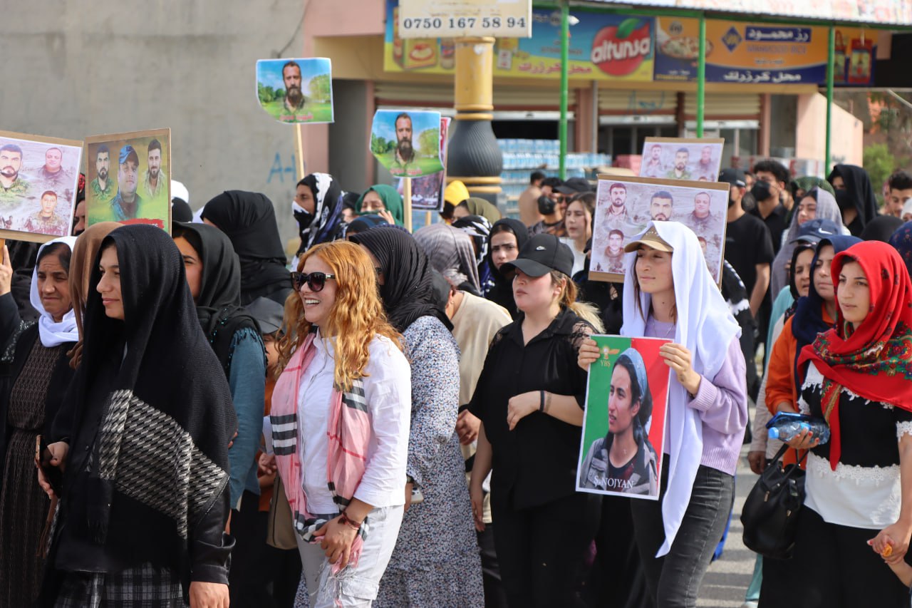 Şengal Özerk Yönetimi Yürütme Kurulu önünde başlayan yürüyüş Irak Ulusal Güvenlik Merkezi önüne kadar devam etti. Yürüyüşte, KDP’nin işgalcilerle iş birliğini gösteren posterler ve Erdoğan-Barzani karikatürlerinin yanı sıra Kürdistan dağlarında işgalci Türk devletinin saldırıları sonucu şehit düşen özgürlük gerillalarının fotoğrafları taşındı.