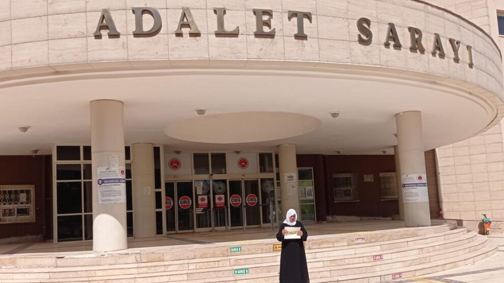Sabahın erken saatlerinde adliye binası önüne yerleştirilen beton blokların önüne gelen anne ve oğlu, yere bıraktıkları “Herkes için adalet”, “Bir anne 148 gündür Riha Adalet Sarayı önünde adalet nöbeti tutuyor. 2 evladı ve eşi hastanede katledildi, katliamın içinde milletvekili olduğu için 3 yıldır dava açılmıyor” dövizleriyle nöbeti başlattı.