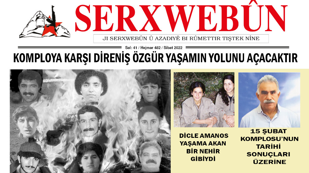HABER MERKEZİ – Serxwebûn gazetesinin Şubat 482. sayısı, Kürt Halk Önderi Abdullah Öcalan’a karşı yürütülen Uluslararası Komplonun 23. yılında, “Komploya karşı direniş özgür yaşamın yolunu açacaktır” ana başlığıyla çıktı. Sayıda 15 Şubat Komplosunun tarihi sonuçları, son siyasal gelişmeler, DAİŞ’in artan saldırıları ve farklı konu başlıkları yer alıyor.