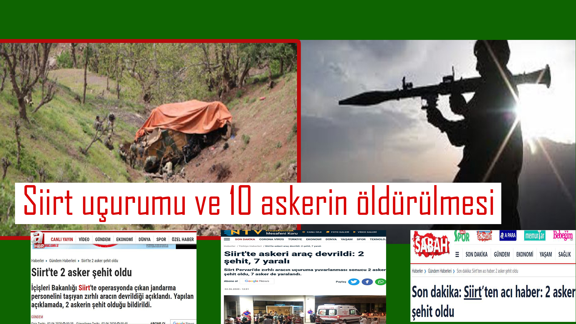 Bu gün Türk devletinin bir yalanı daha ortaya çıktı. Hatırlanacağı üzere geçtiğimiz 1 Haziran günü akşam saatlerinde Türk Özel Savaş medyası tarafından peş peşe “Son Dakika” başlığı ile Siirt’te askeri bir aracın üs bölgesine giderken virajını alamayıp uçuruma yuvarlandığı servis edildi. Bir kaç dakika içerisinde onlarca sözde basın veya ajans dedikleri kurumlar olayın kaza olduğunu aynı haber başlığı ve cümlelerle yansıttı. “Kazada” araçta bulunan 8 askerin hafif yaralandığı ve hemen tedaviye alındığı belirtiliyordu.