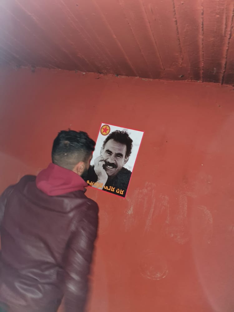 Başûrê Kürdistan’da yaşayan Rojava’lı gençler PKK’nin 43. kuruluş yıl dönümü gerekçesiyle Halklar Önderi Abdullah Öcalan’ın posterlerini Silêmanî kentinin işlek yerlerine astı.