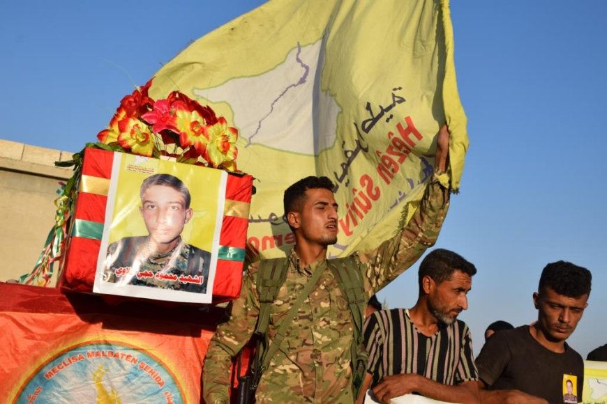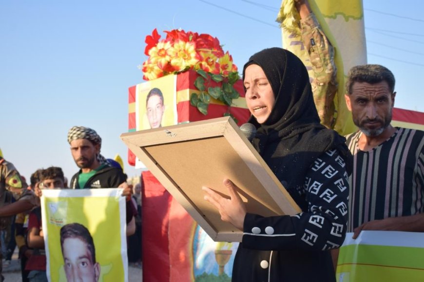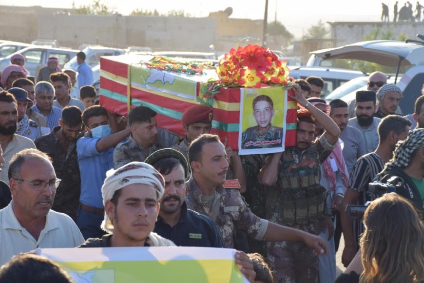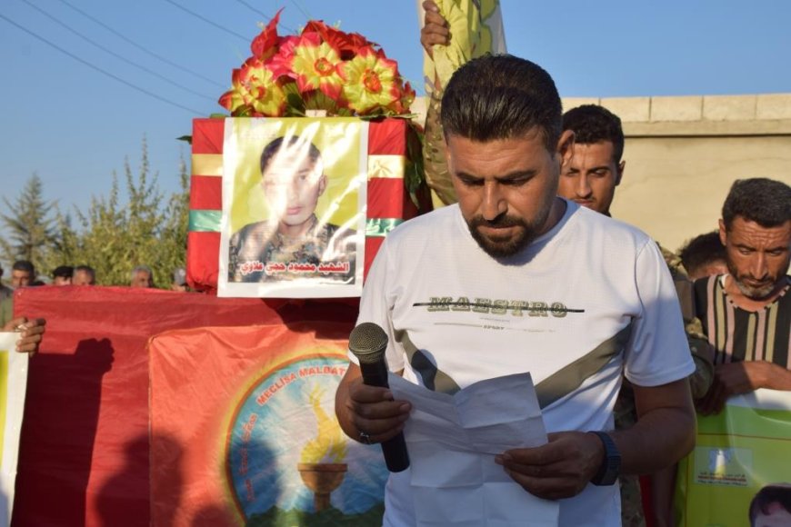 Sirîn halkı ile kentteki kurum ve kuruluşların üyeleri, Demokratik Suriye Güçleri (QSD) savaşçısı Şehit Mehmûd Hecî Elewî için düzenlenen cenaze törenine katıldı. Şehit Mehmûd Elewî, 31 Ağustos’ta görevini yerine getirirken şehit düştü.
