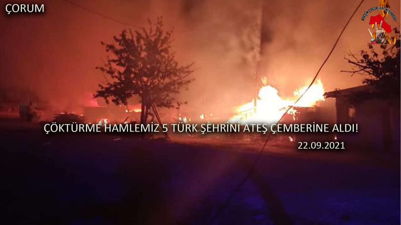 19.09.2021 Çorum’un Alaca ilçesinde Kürt düşmanı olan faşist şahsa ait 2 traktör-145 ton hububat, saman ve yem yakılmıştır.