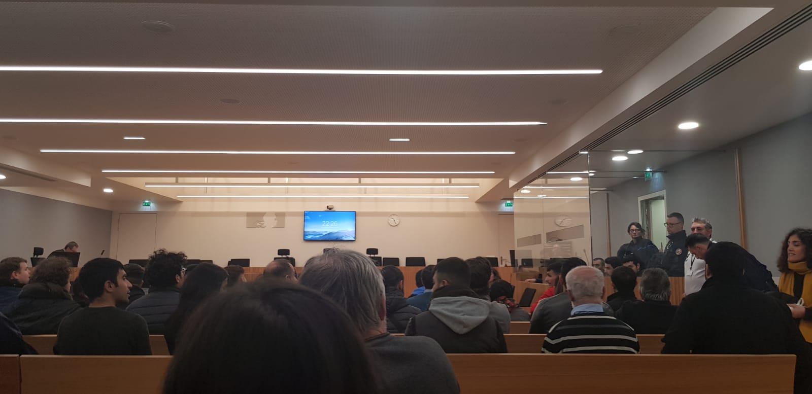 Gözaltına alınan gençlerden 7’si tutuklanmış, 10’u ise tutuklu yargılanmak üzere serbest bırakılmıştı. Tutuklama kararlarını alan mahkeme 4 Nisana yeni bir mahkeme tarihi vermiş ve 7 Kürt gencini bu güne kadar alıkoymuştu. Fransanın Strasbourg kentinde bugün saat 14:00’de başlayan mahkeme hala devam etmekte. Duruşma salonuna birçok genç ve yurttaş’da katıldı.  Duruşma salonuna birçok genç ve yurttaş’da katıldı.