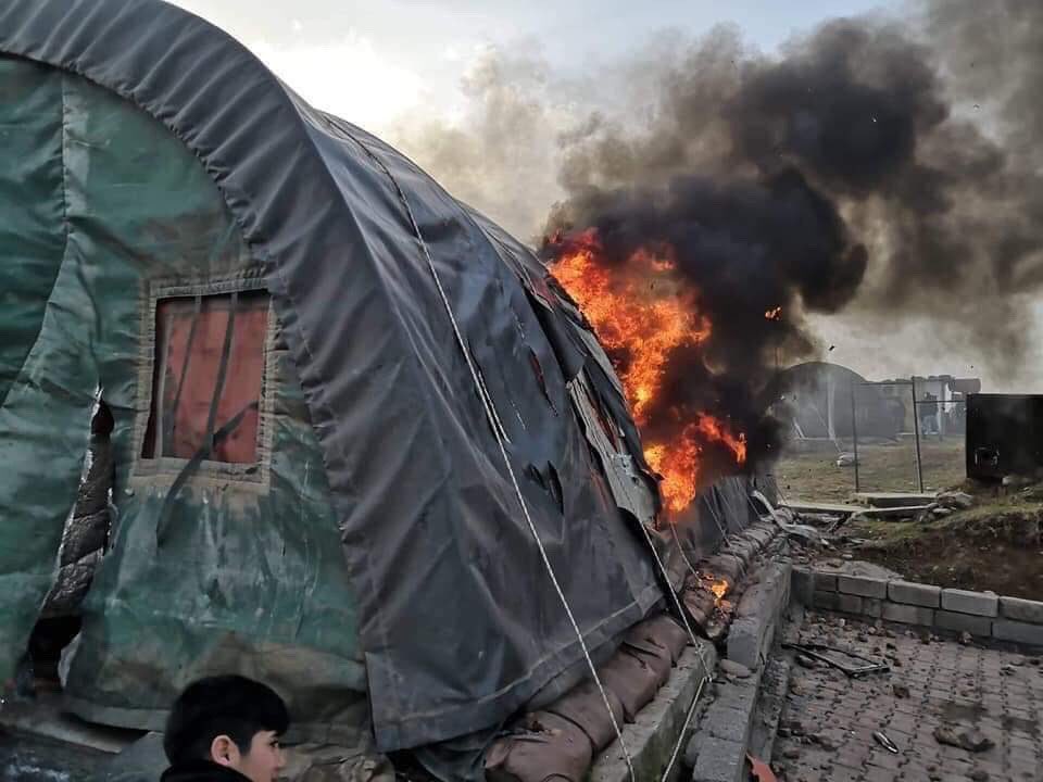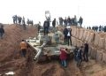 Askeri alanın içine giren yüzlerce kişi, Türk ordusuna ait tankı ele geçirip, ateşe verdi.