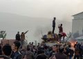 Telleri aşıp askeri üssün bulunduğu alana giren halk, askeri üssü taşladı.