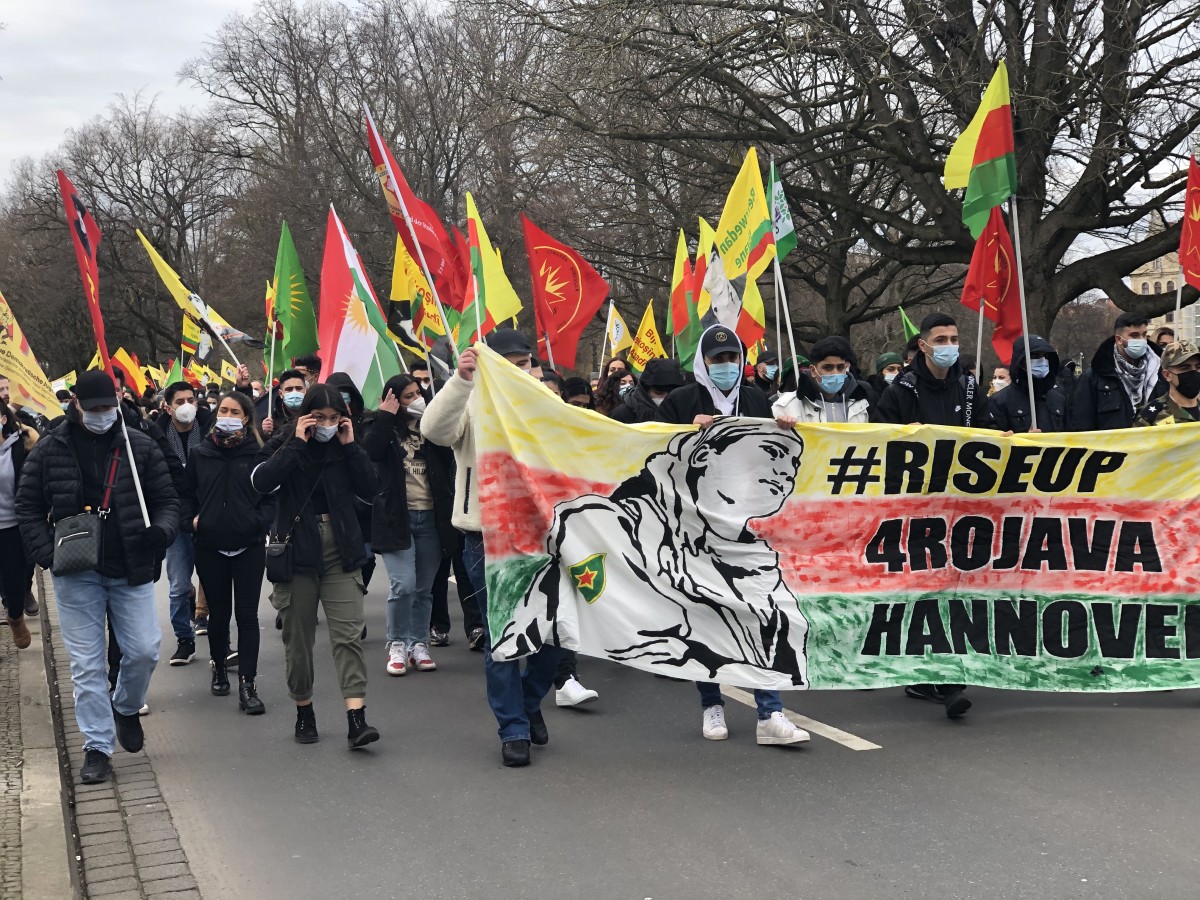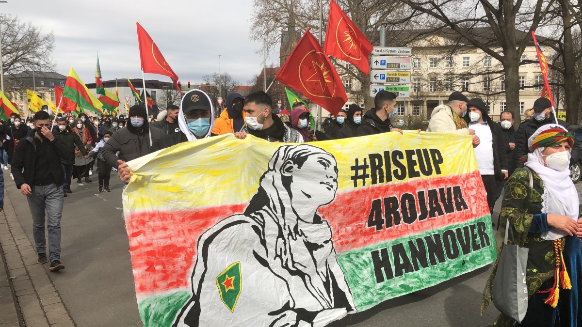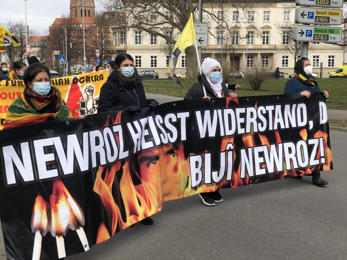 HANNOVER – Gençlik öncülüğünde merkezi tren istasyonu önünde saat 12:00’da bir araya gelen Kürdistanlılar ve dostları Newroz kutlamalarına başladı. Büyük bir çoşku ve heyecanla gençlik öncülüğünde Newroz kutlaması gerçekleştiren kitleye polisin faşizan saldırı gerçekleşti.