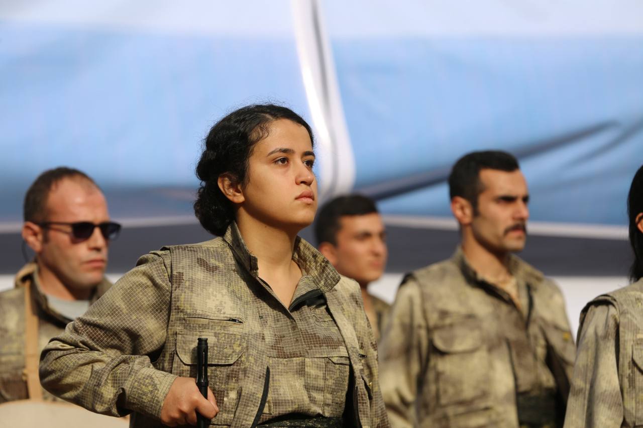 Açıklamanın Türkçesi KCK Yürütme Konseyi Üyesi Sabri Ok, Kürtçesi ise YJA Star Serhat Eyalet Komutanlığı Üyesi Vejîn Dersîm tarafından okundu.