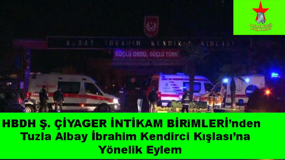 HABER MERKEZİ- Halkların Birleşik Devrim Hareketi (HBDH) Şehid Çiyager İntikam Birimi, işgalci Türk ordusuna ait Tuzla’da yer alan Albay İbrahim Kendirci Kışlası’na yönelik 7 Ocak 2020 tarihinde gerçekleştirilen eylemi üstlendi.