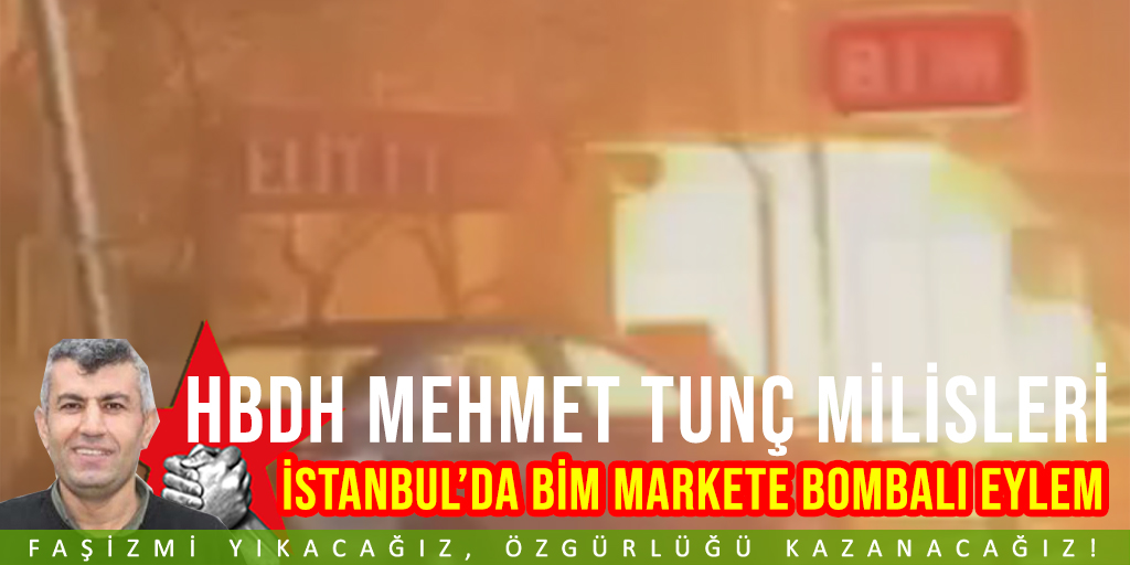 “05 Şubat 2021 günü 23:00 sularında İstanbul Bağcılar Kirazlı mahallesinde bulunan BİM Market şubesi HBDH Mehmet Tunç Milislerimiz tarafından EYP ile vurulmuştur. BİM market faşizmin sermaye odağı olarak faaliyet göstermektedir. Hem bünyesinde çalıştırdığı emekçileri vahşi sömürü koşullarında çalıştırmakta, hem de bu işçilerin ürettiği artı değerlere el koyarak oluşan sermayeyi faşist iktidarın hizmetine vermekte, sömürüye ve sömürgeciliğe destek sunmaktadır. Bu hizmetleri karşılığı faşist iktidar tarafından ödüllendirilen vergileri silinen, hibeler verilen BİM patronları ezilenlerin canı ve kanı üzerinden cennet hayatı sürmektedir.