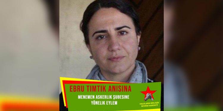 HABER MERKEZİ – HBDH Milisleri yaptıkları yazılı açıklama ile 29 Ağustos 2020 günü Ebru Timtik’in direnişini selamlamak amacıyla İzmir Menemen İlçesinde yer alan Askerlik Şubesi yerleşkesine yönelik eylem gerçekleştirdiklerini duyurdu.