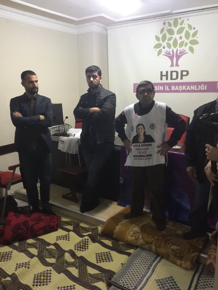 Öte yandan öğlen saatlerinde polisin HDP’li yöneticileri arayıp, “Bize açlık grevi eylemine girenlerin tek tek isimlerini verin. Yoksa binayı basıp gözaltı yaparız” diye tehdit edildiği belirtildi. Avukatlar, Mersin Cumhuriyet Başsavcılığı’nın yürütmüş olduğu soruşturma kapsamında açlık grevi eylemine giren 9 kişinin “örgüt üyesi olduğu” iddiasıyla gözaltına alındığını belirtti.