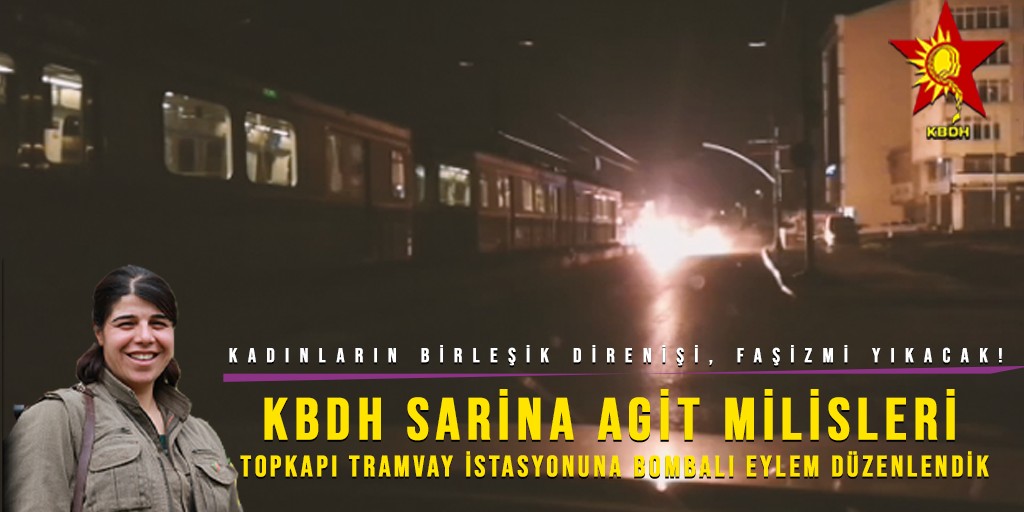 “08.03.2021 günü sabah saat 05.45 sıralarında İstanbul Topkapı’da bulunan tramvay istasyonuna KBDH Sarina Agit milis güçlerimizce EYP’li eylem düzenlenmiştir. Eylem sonucunda tramvay ve raylar büyük oranda hasar görmüştür.”