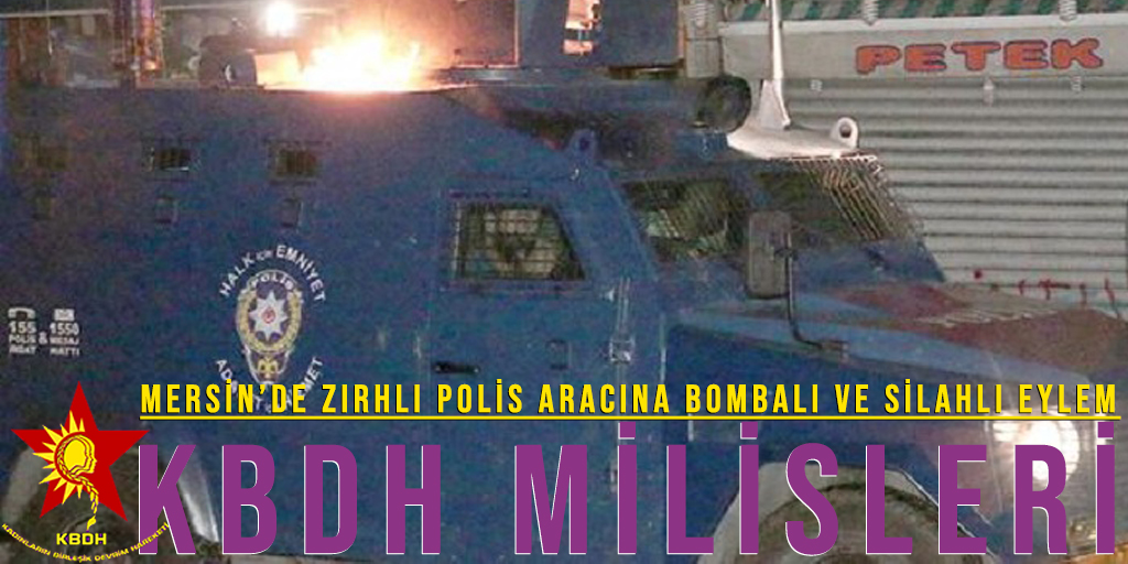 “08 Şubat 2021 günü saat 23:00 sıralarında Mersin Tarsus Alibeyli mahallesinde devriye gezen akrep tipi zırhlı polis aracı KBDH milis güçlerimizce EYP ile hedeflenmiş ardından uzun namlulu silahlar ile ateş altına alınmıştır. Faşizmin kolluk gücüne ait kayıplar netleştirilemezken, olay yerine çok sayıda ambulans ve zırhlı araç girişi yapıldığı gözlemlenmiştir. Güçlerimiz kayıp vermeden eylem alanından uzaklaşmıştır.”