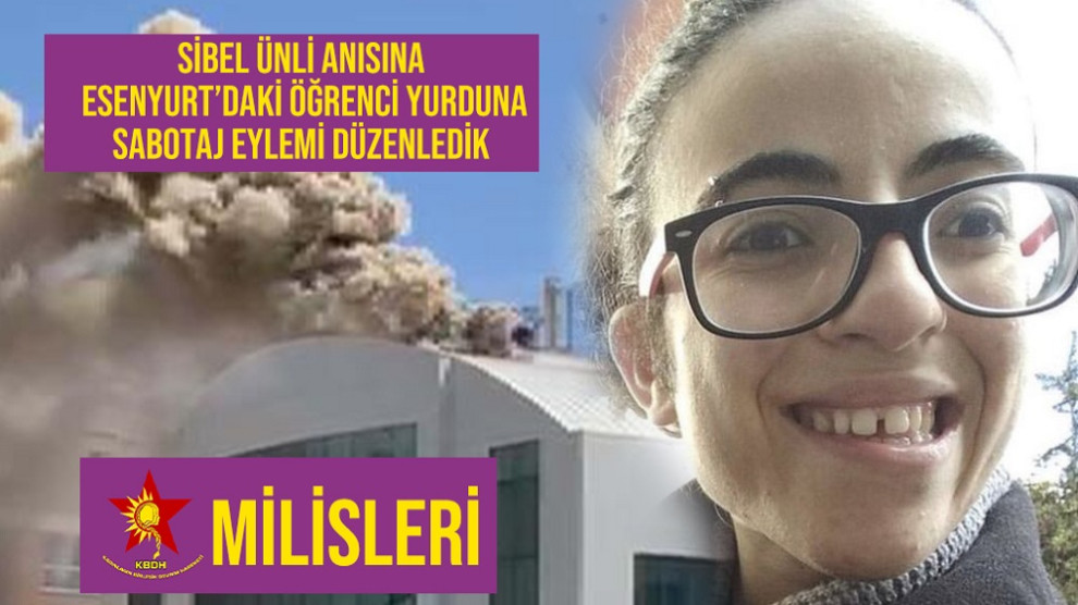 İSTANBUL- Yazılı bir açıklama yapan Kadınların Birleşik Devrim Hareketi (KBDH) milisleri, eylemin Ocak ayında intihar eden İstanbul Üniversitesi öğrencisi Sibel Ünli anısına gerçekleştirdiğini duyurdu.