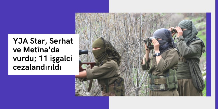 BEHDİNAN – Yazılı açıklama yapan HPG Basın İrtibat Merkezi YJA Star gerillalarının Serhat ve Metîna’da işgalci Türk ordusuna yönelik eylemler gerçekleştirdiğini duyurdu. Açıklamada eylemlerde tespit edilen 11 işgalci Türk askerinin cezalandırıldığı belirtildi.