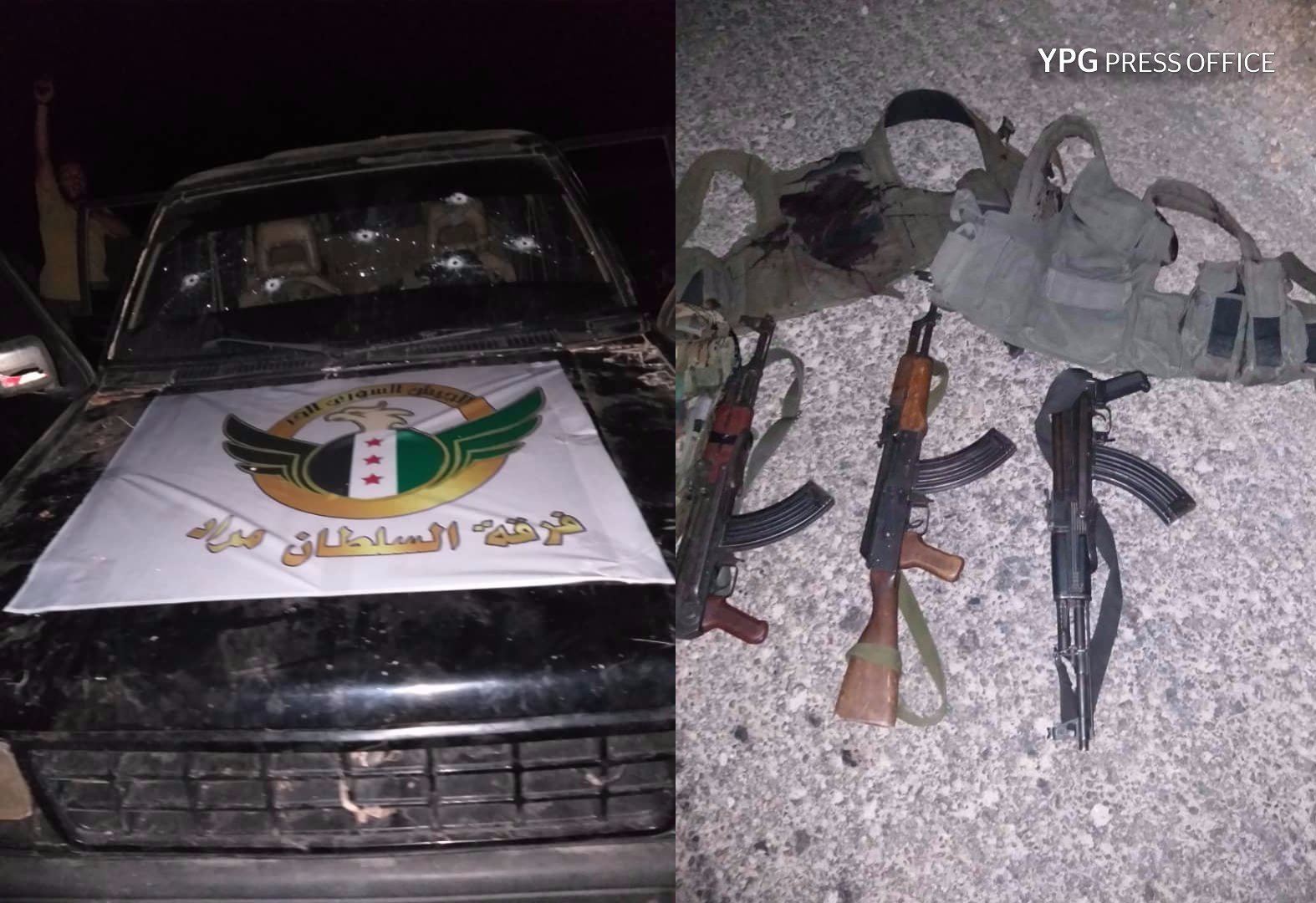 Aynı gün birliklerimiz, Efrîn’e bağlı Raco ve Mabeta ilçeleri arasındaki alanda, içerisinde Sultan Murad çete grubuna ait 3 çete unsurunun bulunduğu bir araca yönelik bir eylem gerçekleştirmiştir. Eylem sonucunda araç içerisindeki 3 unsur öldürülürken AK-47 tipi 3 silah da ele geçirilmiştir. Öldürülen çetelerin isimleri şu şekildedir:Halit el-Ragib (Hama), Ali el-Barhum (Humus), Huluf el-Gutanî (Şam).”
