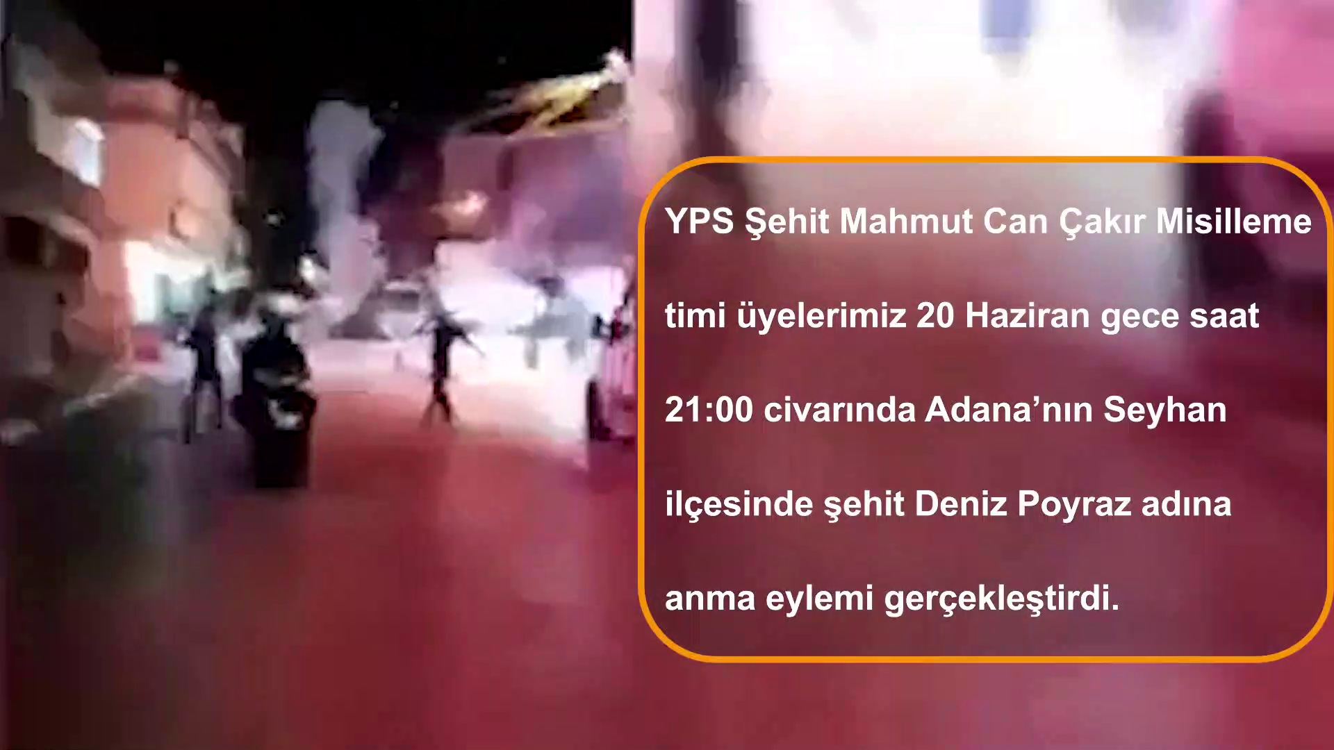 HABER MERKEZİ – Yazılı bir açıklama yapan YPS Şehit Mahmut Can Çakır Misilleme Timi, “Üyelerimiz 20 Haziran gece saat 21:00 civarında Adana’nın Seyhan ilçesinde şehit Deniz Poyraz adına anma eylemi gerçekleştirdi” dedi.