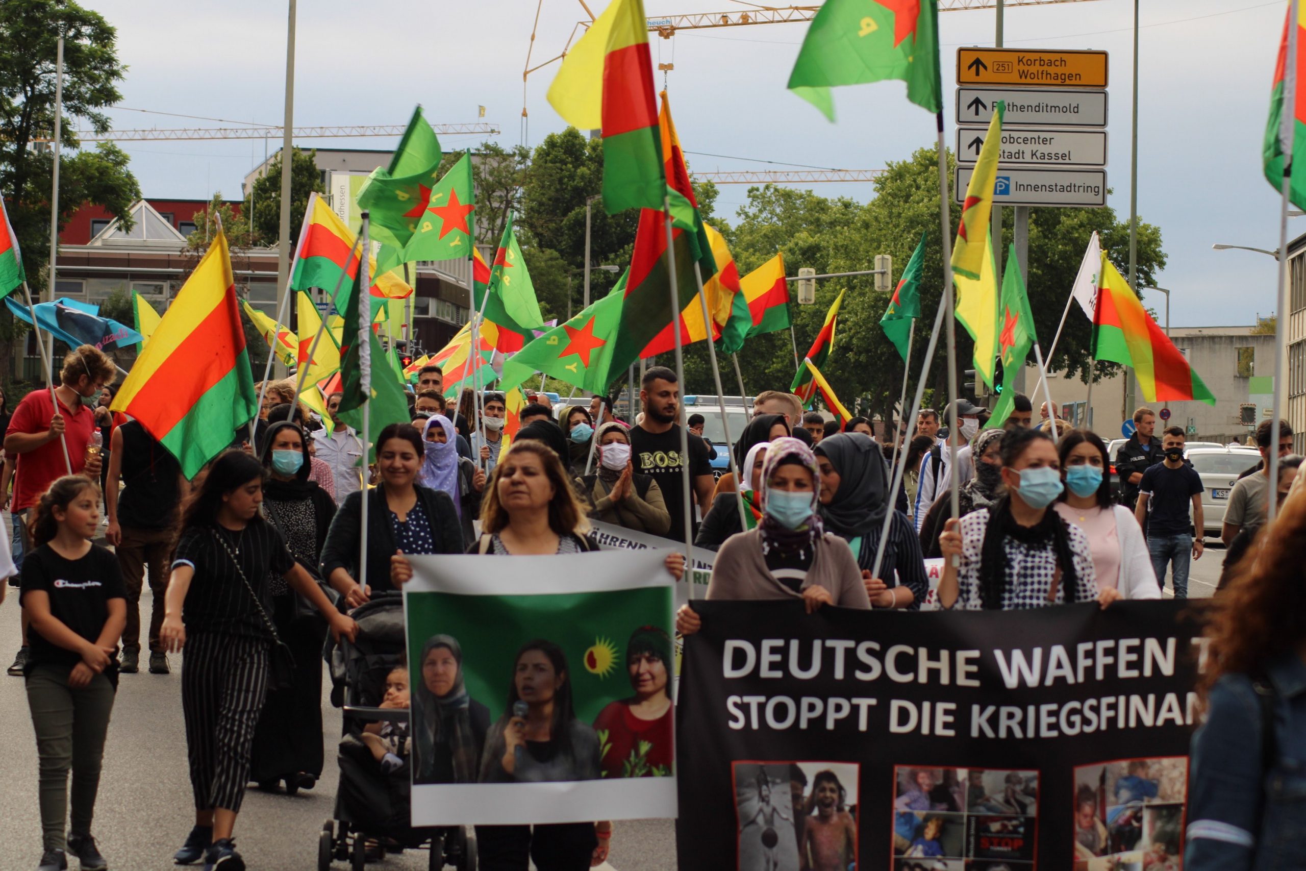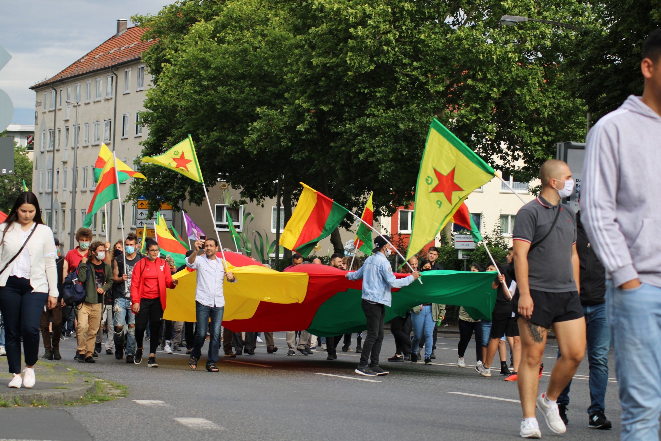 “Kürdistan’daki katliamı durdur!” ve “Türkiye’ye silah ihracatını durdur!” sloganlarıyla yapılan eylem saat 18’de Halit meydanında halkın toplanmasıyla başladı. Meydanda TCŞ aktivistinin Almanca bir bildiri okuması ile başlayan yürüyüşte sık sık Almanca ve Kürtçe sloganlar ile Türk faşizmi protesto edildi. Birçok pankart ve dövizin açıldığı eylemde gençlerin katılımı göze çarptı.