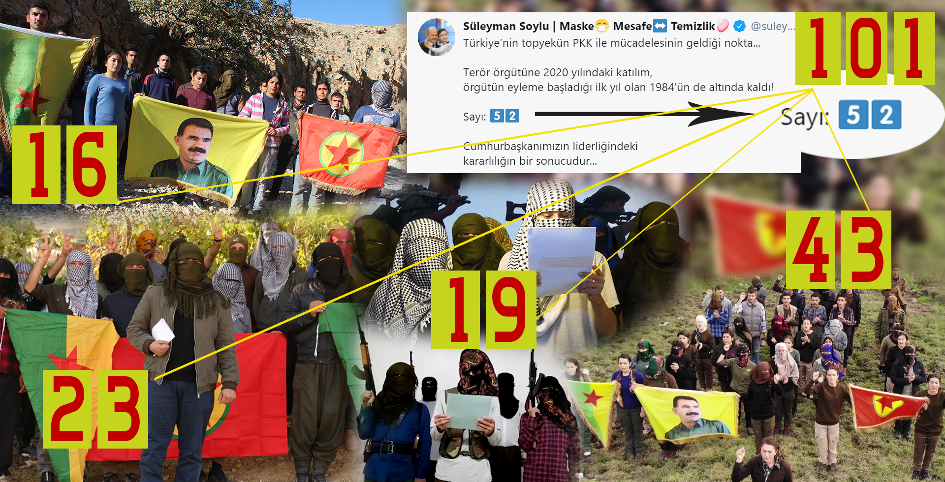 Türk devletinin özel savaşını yürüten en önemli kişilerden olan Süleyman Soylu, Twitter üzerinden yaptığı veri paylaşımları ile kendini kandırmayı sürdürüyor. 2020 yılının başında yaptığı açıklamalarda (yaptığı açıklamaların video kayıtları arşivlerde bulunmakta) PKK’yi bitireceğini, PKK’nin adının dahi kalmayacağı naraları atan işgalci TC devletinin işgalci bakanı Süleyman Soylu sene sonunda PKK’yi bitiremeyince (PKK her zamankinden çok daha güçlü bir konuma geldi) bu sefer PKK’ye katılımların azaldığını söyleyerek kendini kurtarma çabalarına girdi.