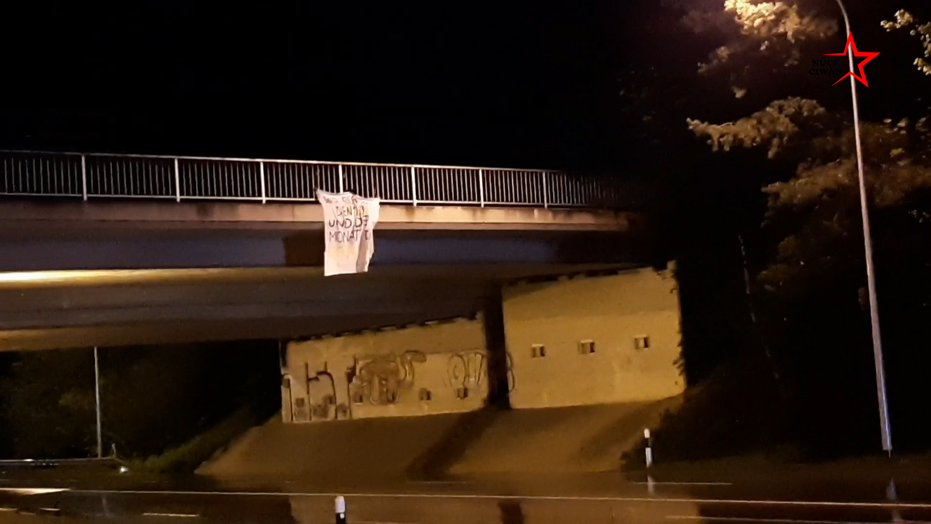 Pankartlar gece saatlerinde şehir içindeki bir üst geçide asıldı.