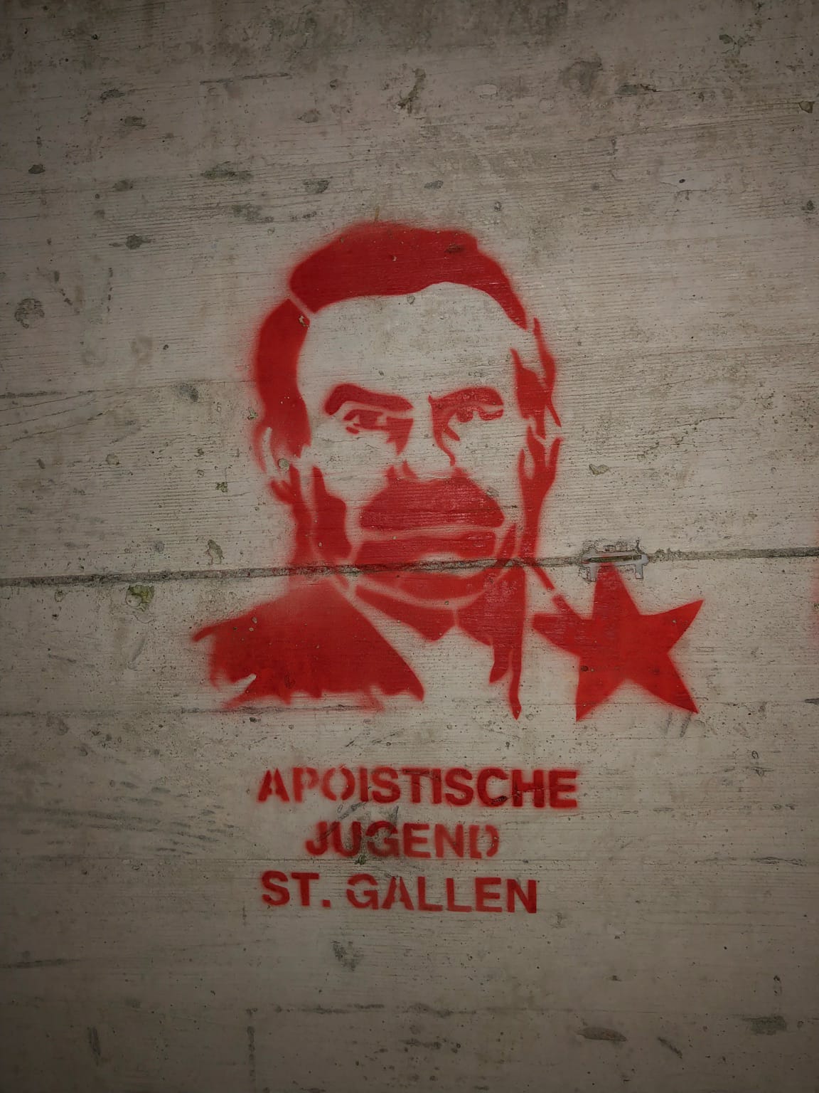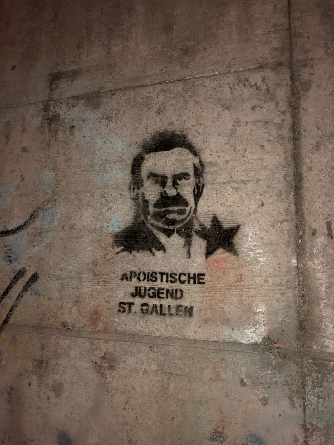 ST.GALLEN – St.Gallen’de Kürt gençleri tecride karşı Halklar Önderi Abdullah Öcalan’ın portresini sprey boyalarla duvarlara resmettiler.