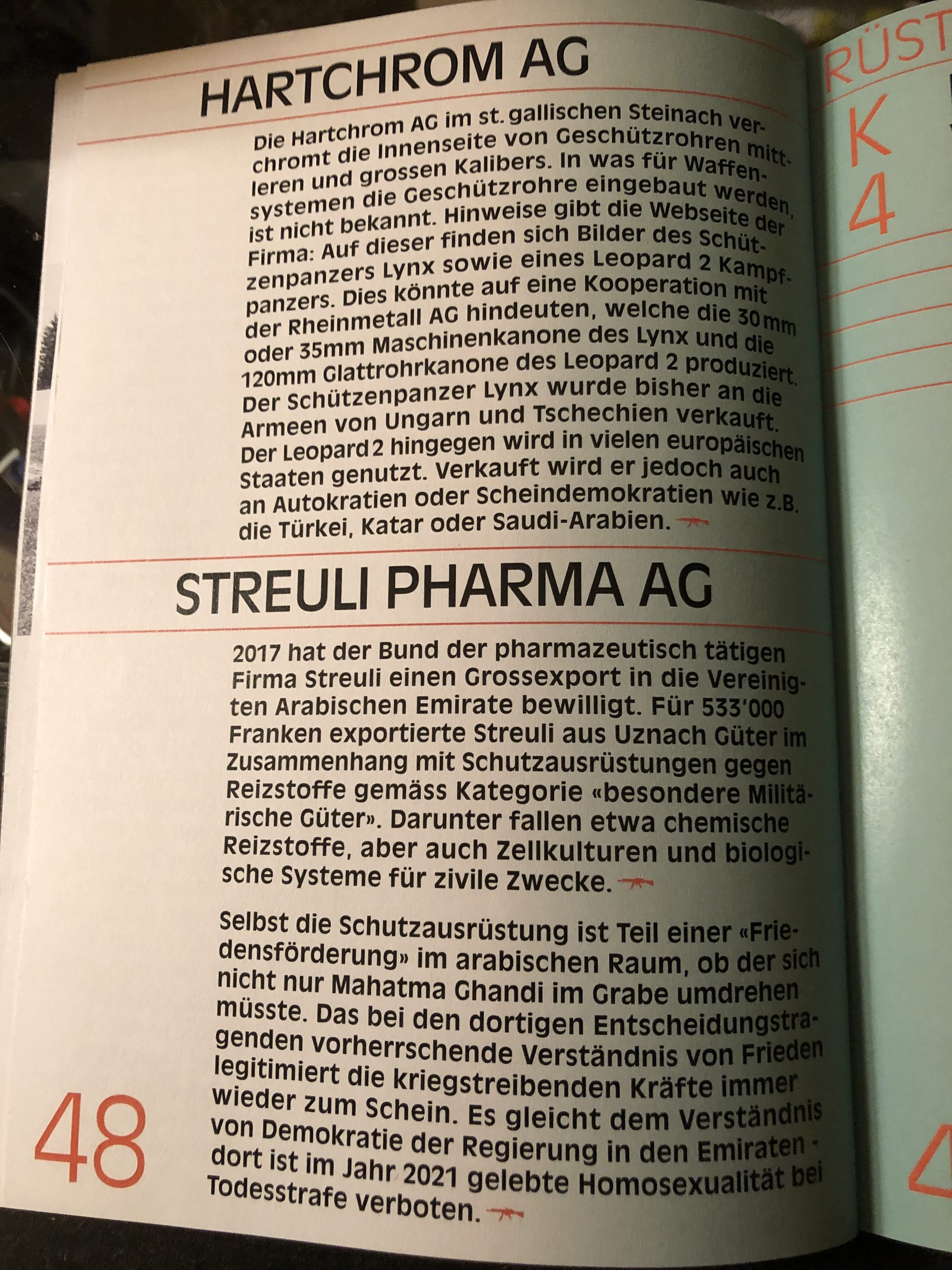 İsviçre’nin St. Gallen kantonunda TCŞ aktivistleri öncülüğünde enternasyonalistlerin katılımı ile kimyasal silah üreten firmalar ve satışı yapan ülkelerin, kimyasal madde ve silahların neler sebep olduklarına dair bir panel gerçekleştirildi.