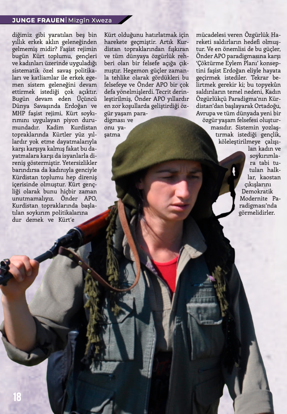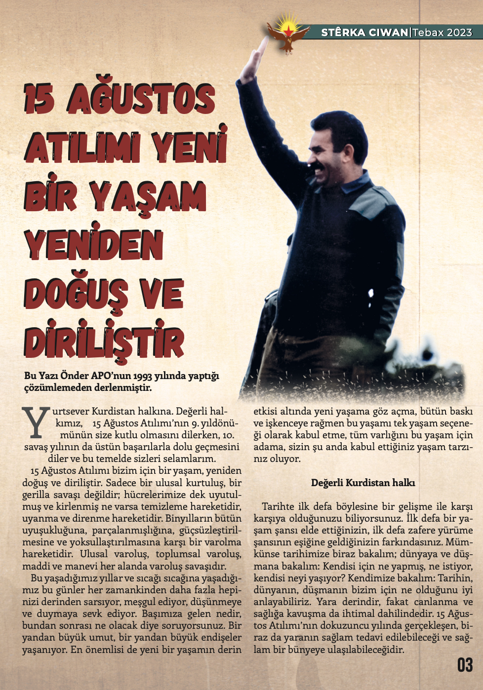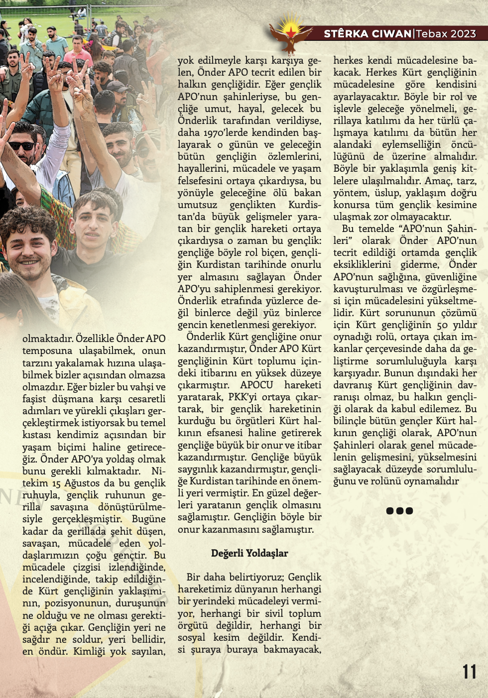 Gençlik Dergisi Stêrka Ciwan, “BI RIHÊ ŞOPDARÊN EGİDAN CENGA AZADİYÊ SERBIXIN!’’ başlığıyla çıktı.