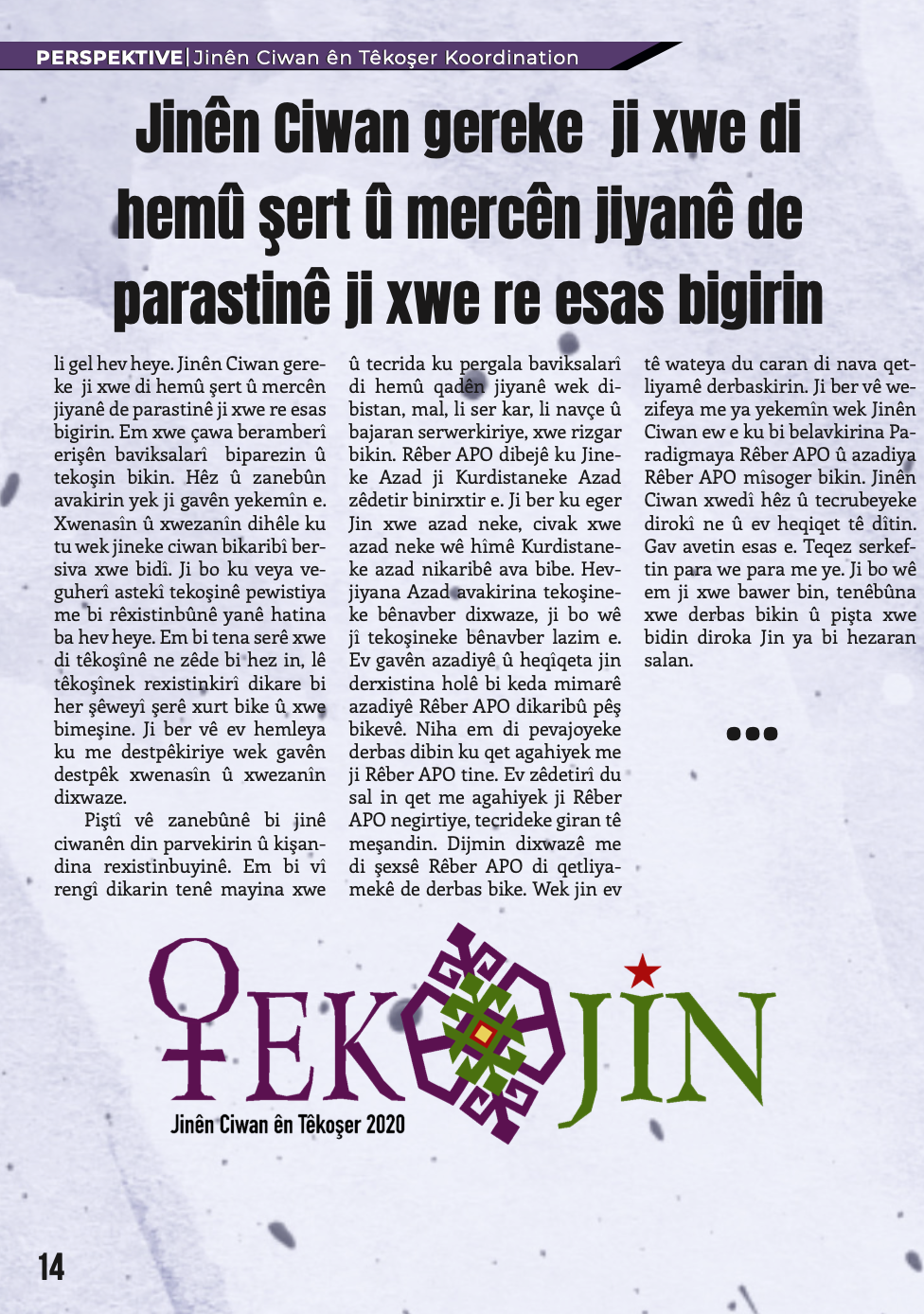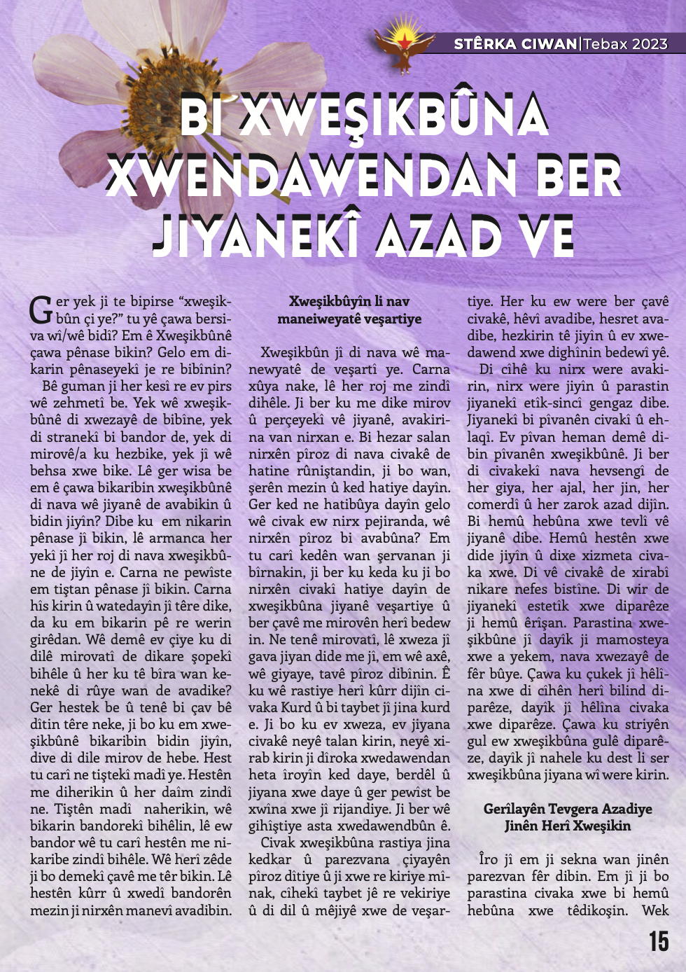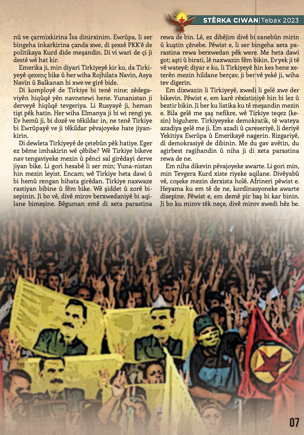 Gençlik Dergisi Stêrka Ciwan, “BI RIHÊ ŞOPDARÊN EGİDAN CENGA AZADİYÊ SERBIXIN!’’ başlığıyla çıktı.