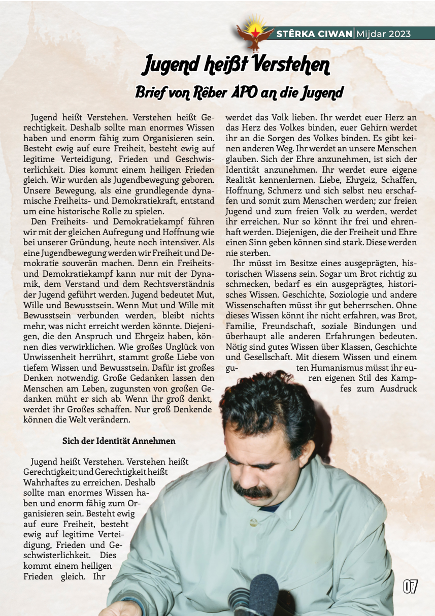 – Jugend heißt Verstehen – Brief von Rêber APO an die Jugend