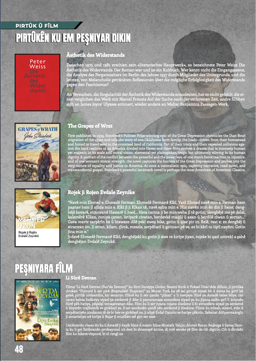 Ayrıca Avrupa Gençlik örgütleri Tevgera Ciwanên Şoreşger (TCŞ) ve Jinên Ciwan ên Têkoşer (TekoJIN) perspektif yazıları da bu sayıda yerini almakta. Aynı zamanda arka kapakta Önder APO’nun ‘’gizli ruhumdu’’ dediği, 18 Mayıs 1977’de Şehit düşürülen şehadetine karşılık APOcu grubun PKK’yi kurduğu Haki Karer yer almakta.