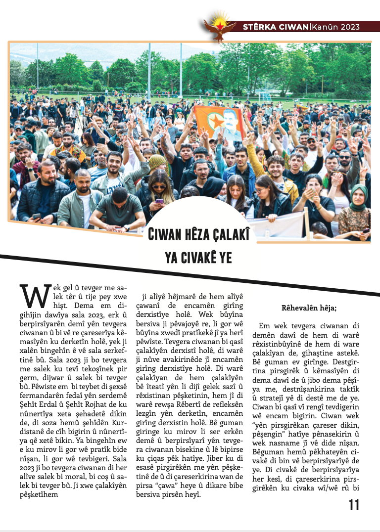 – Ciwan Hêza Çalakî Ya Civakê Ye(Gençlik Toplumun Eylem Gücüdür)