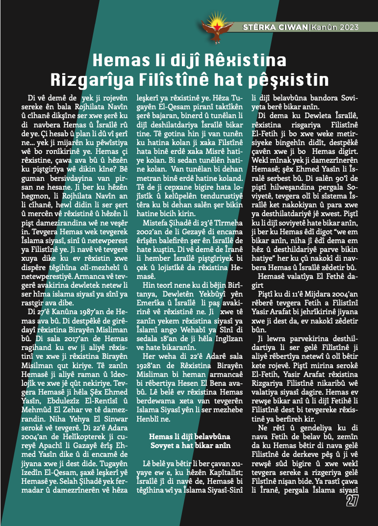 – Hemas Li Dijî Rêxistina Rizgarîya Filîstînê Hat Pêşxistin(Hamas Filistin Kurtuluş Örgütüne Karşı Geliştirildi)