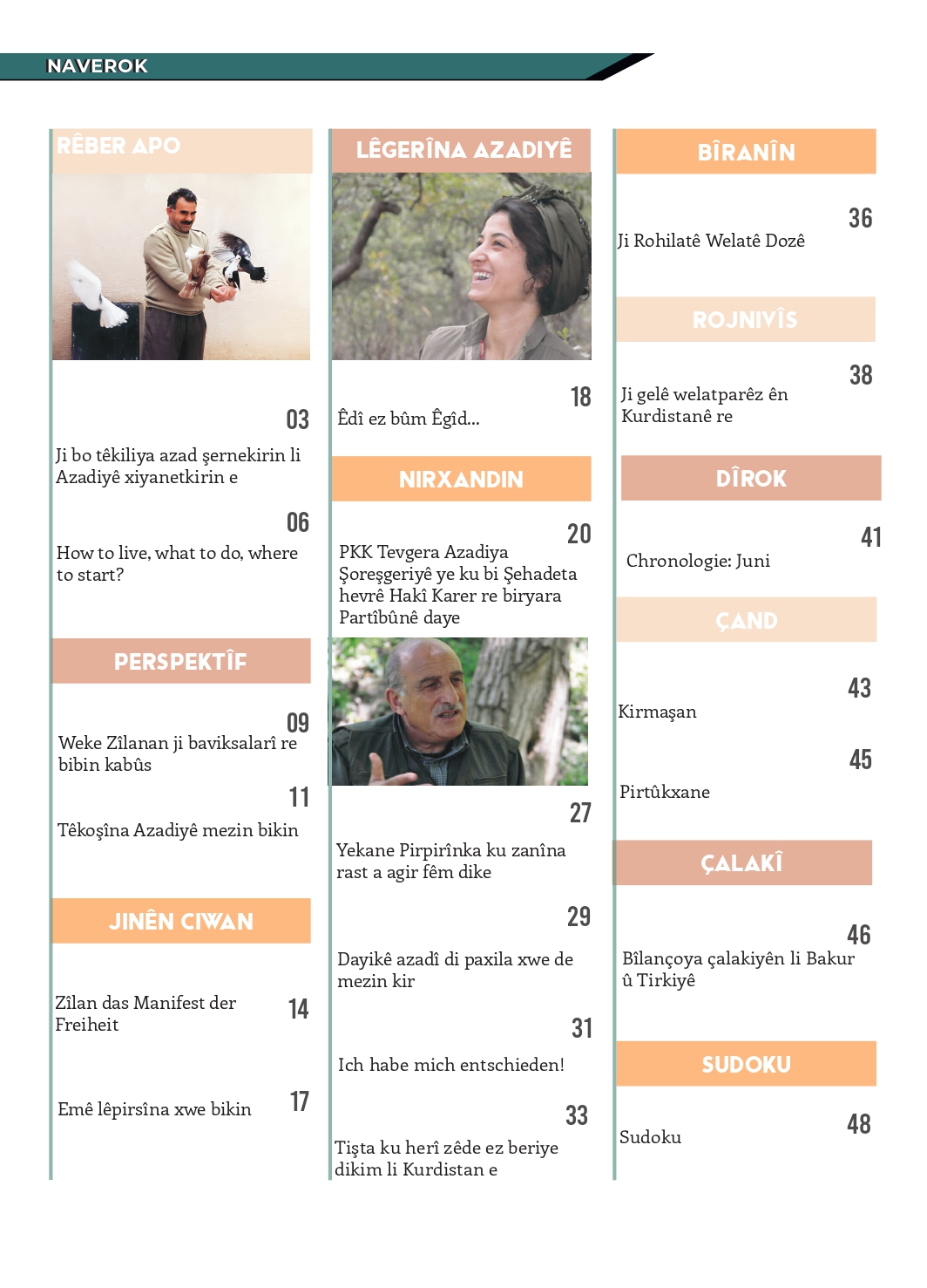 Ayrıca PKK Yürütme Konsey üyesi Duran Kalkan’ın Stêrka Ciwan dergisi için Şehit Haki Karer’in nasıl biri olduğuna dair ve onunla ilgili anılarını özel kaleme aldığı yazısı yayınlandı.
