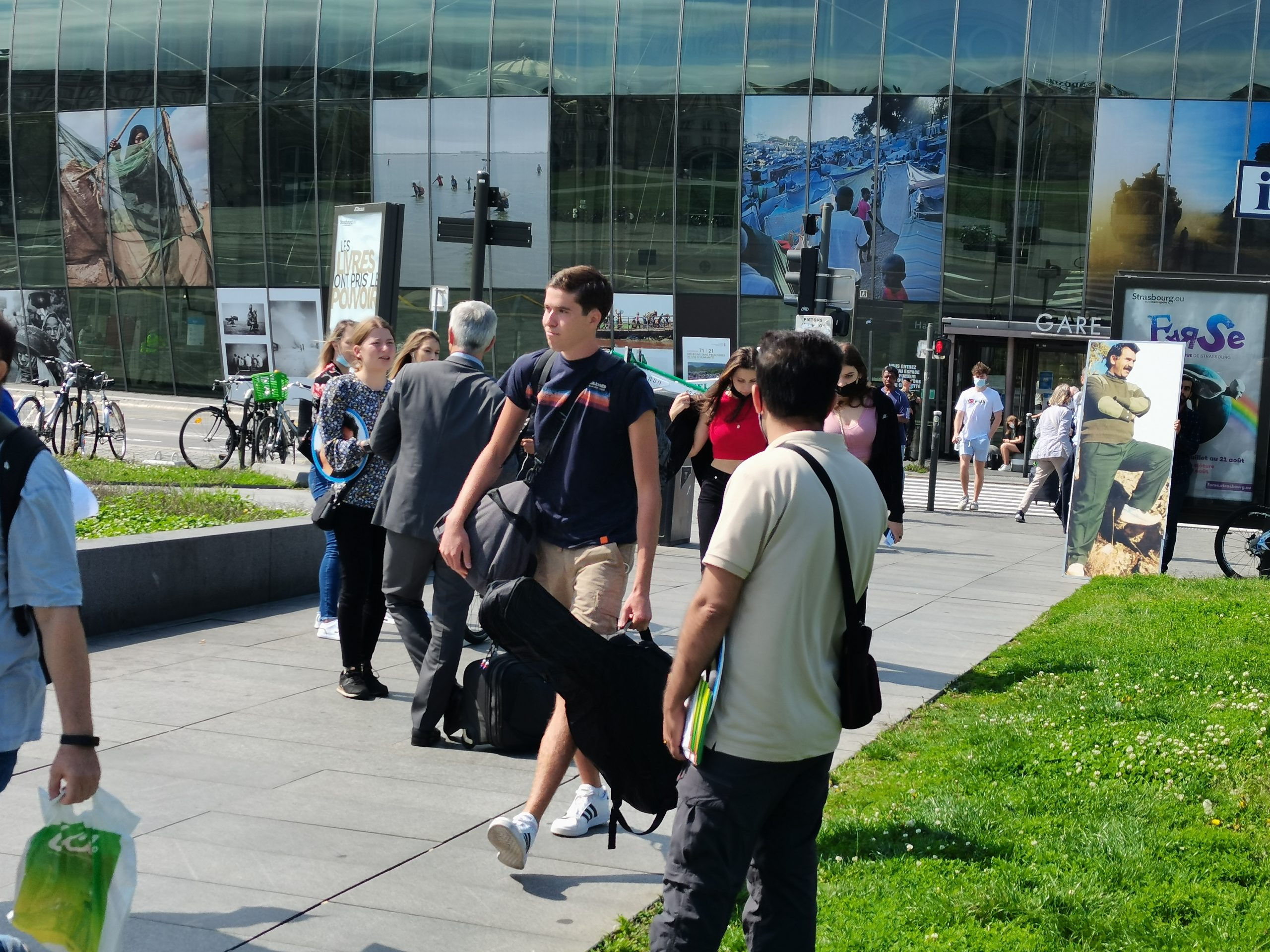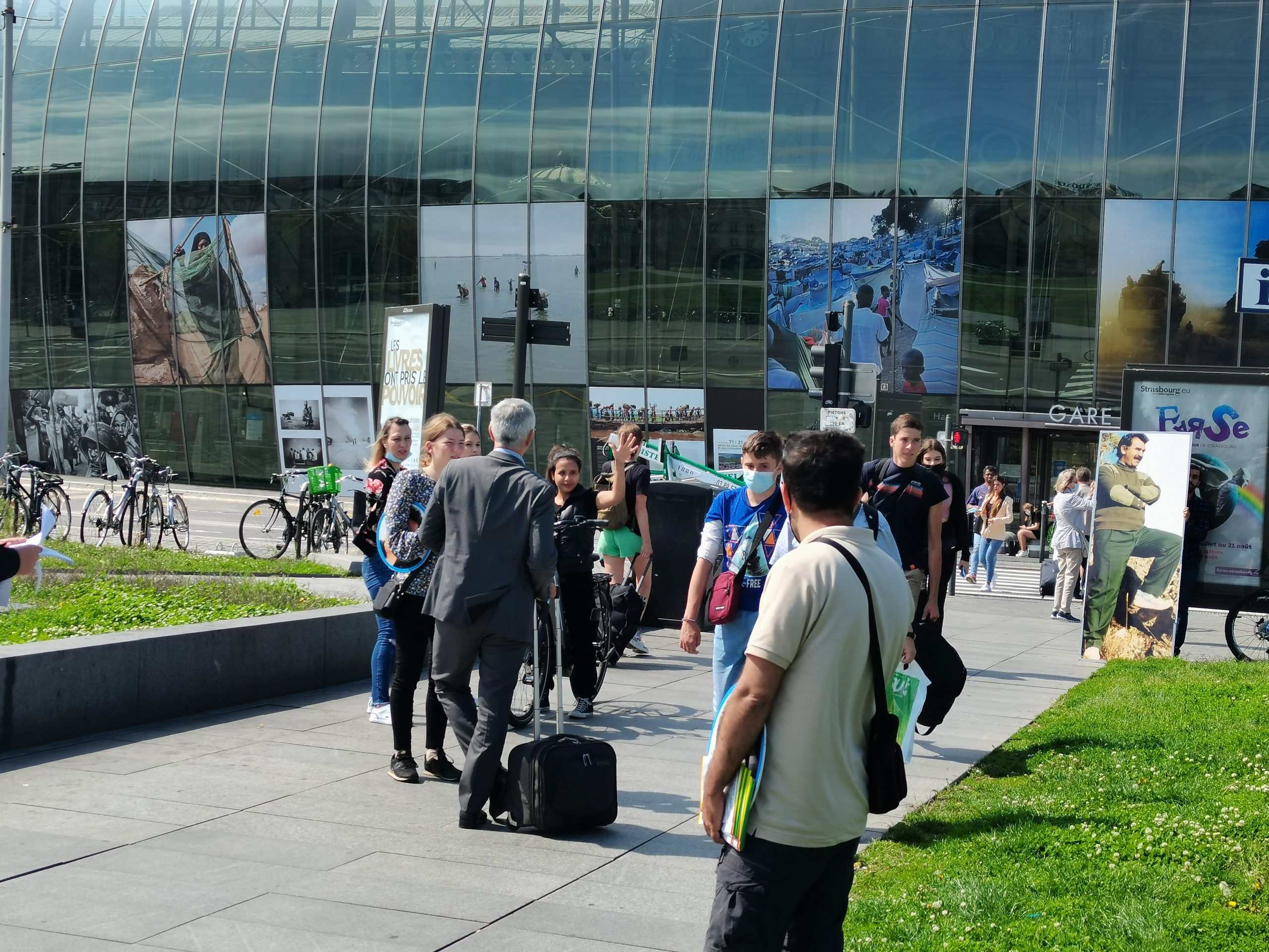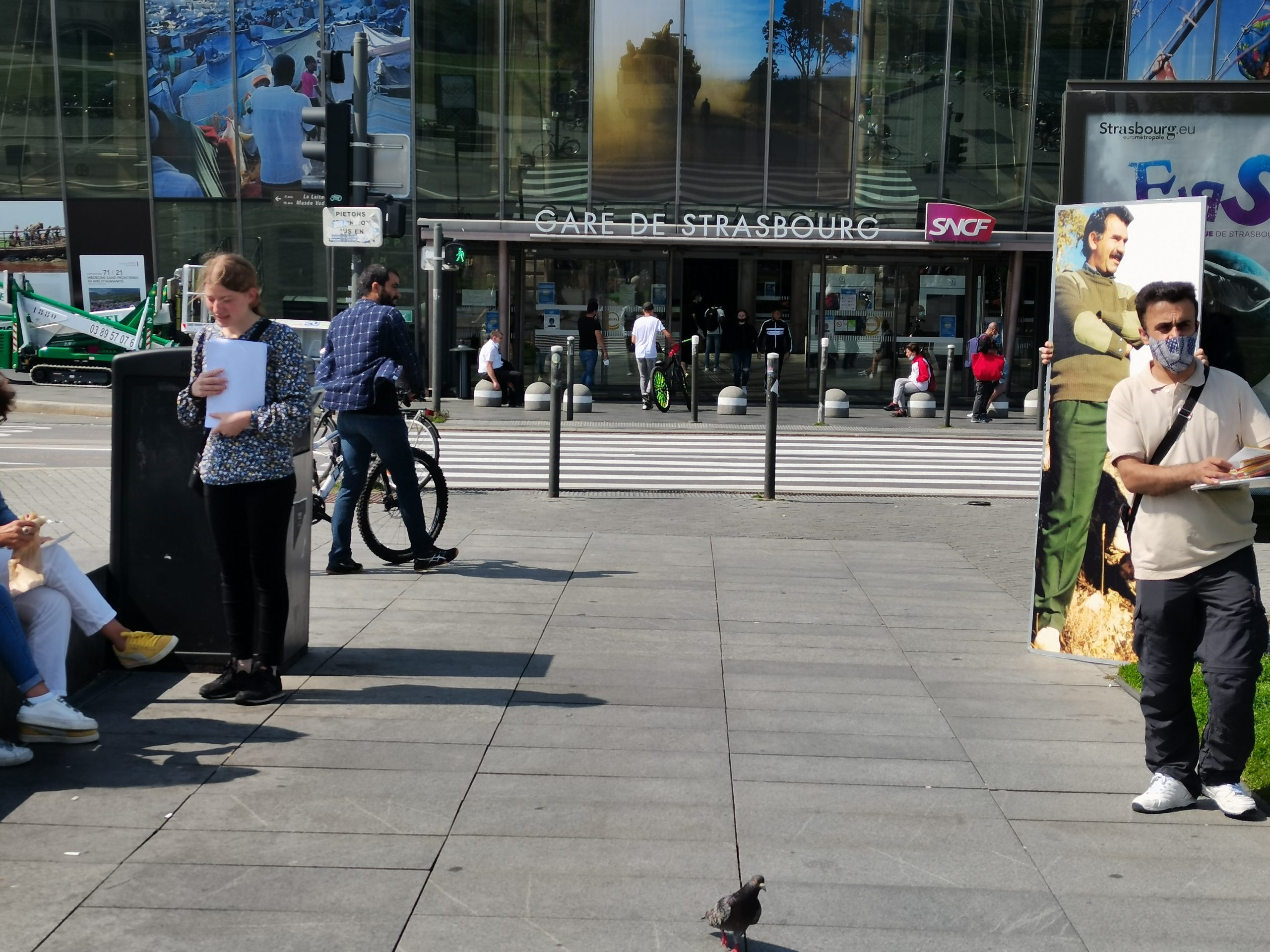 STRASBOURG – Strasbourg merkezi tren garı önünde bir araya gelen gençler Önder Öcalan’ın posterini sergileyip bildiriler dağıttılar.