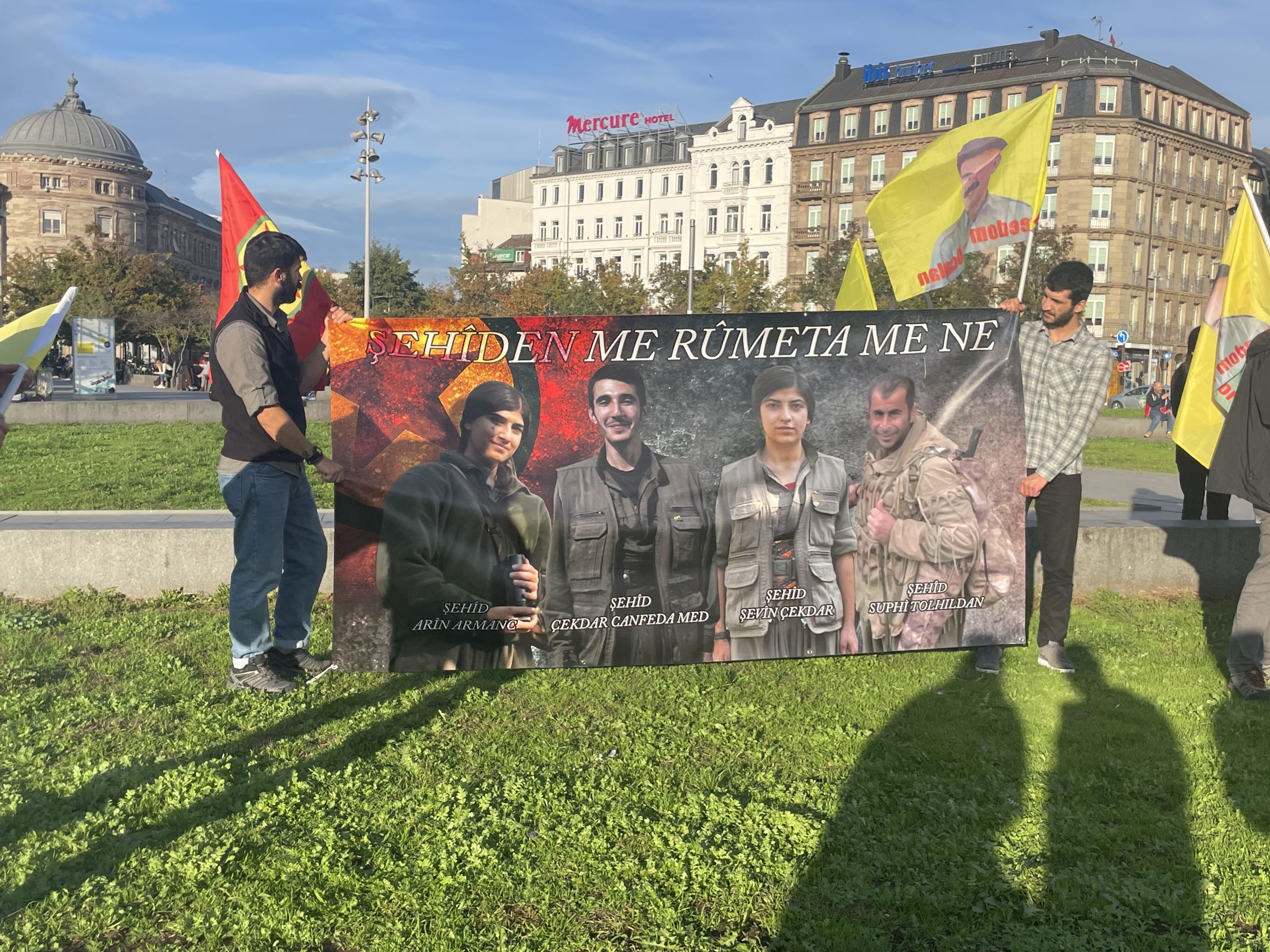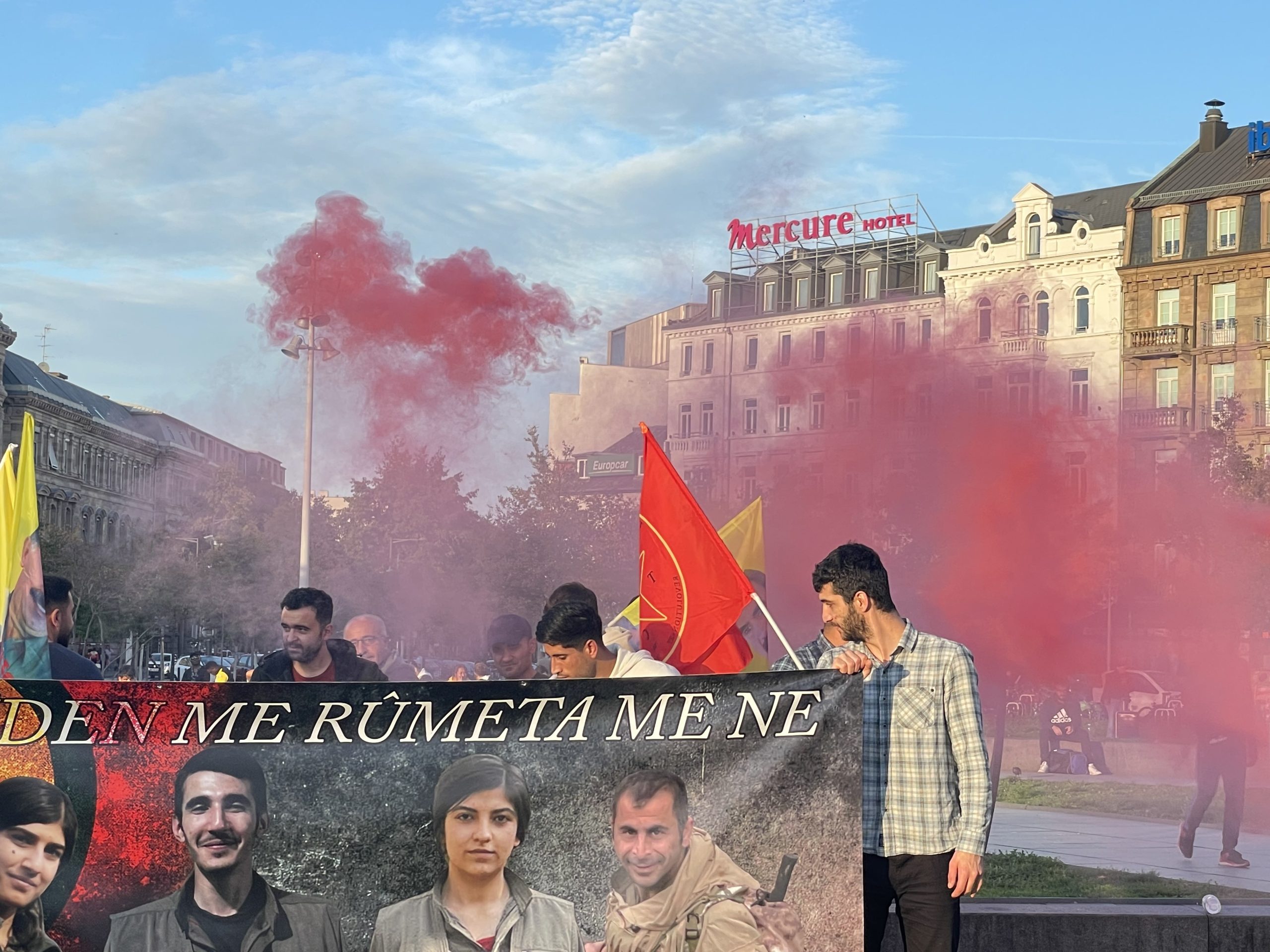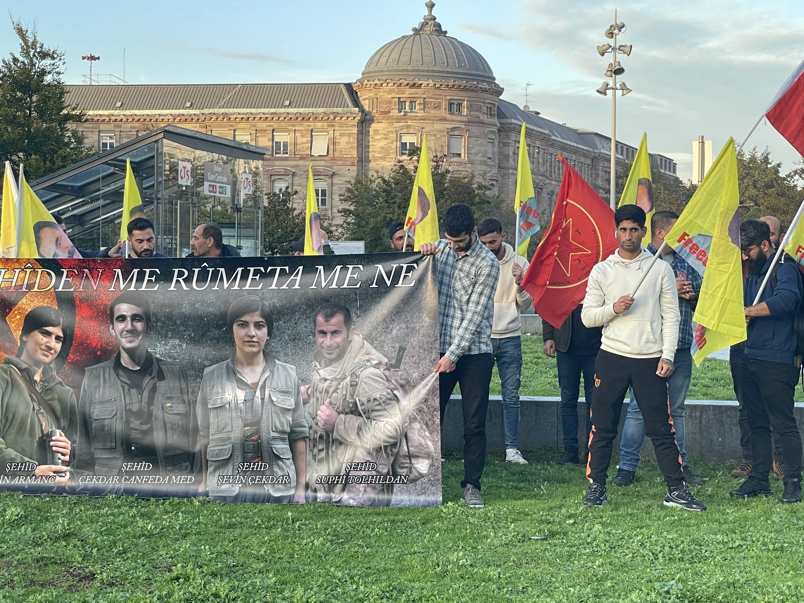 Gare de Strasbourg (Merkezi tren istasyonu) önünde akşam saatlerinde bir araya gelen gençler Kürdistan Devrim Şehitleri anısına bir dakikalık saygı duruşunun ardından mitinglerine başladılar.
